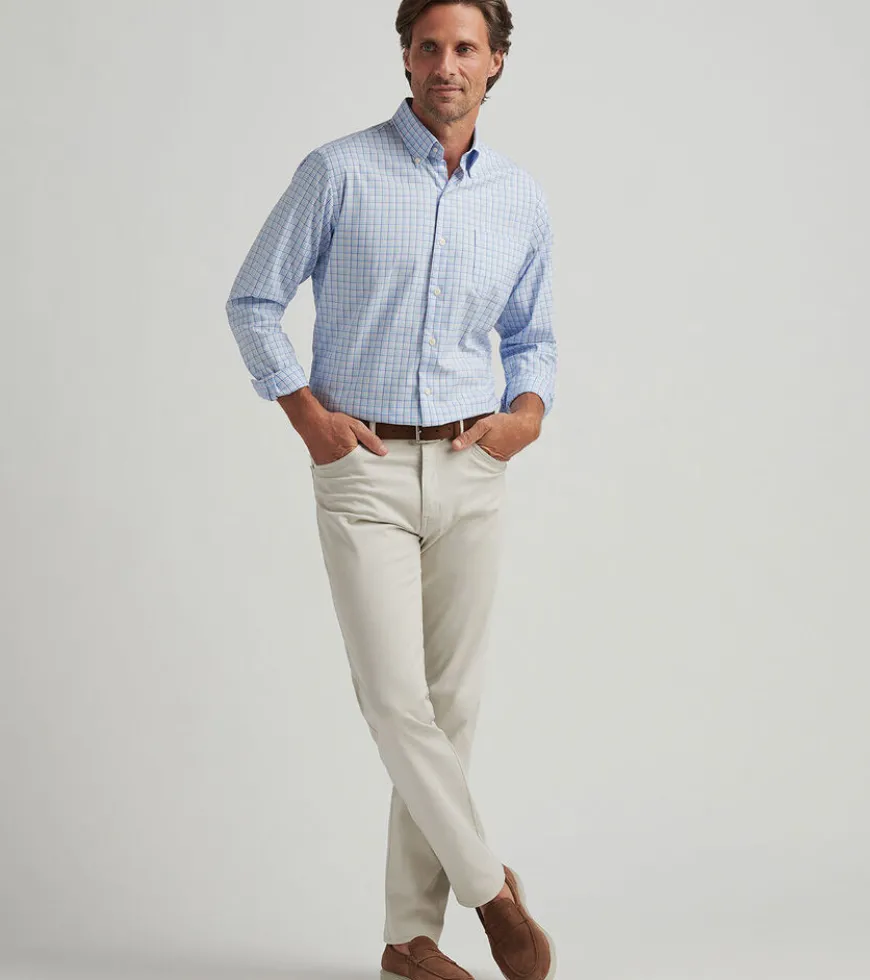 These work-to-weekend favorites offer the classic look and feel of traditional twill shirts in an innovative easy-care fabric that stretches and wicks moisture for all-day comfort. Finished with a button-down collar, French placket and double-button barrel cuffs.