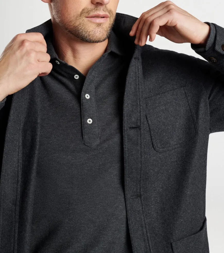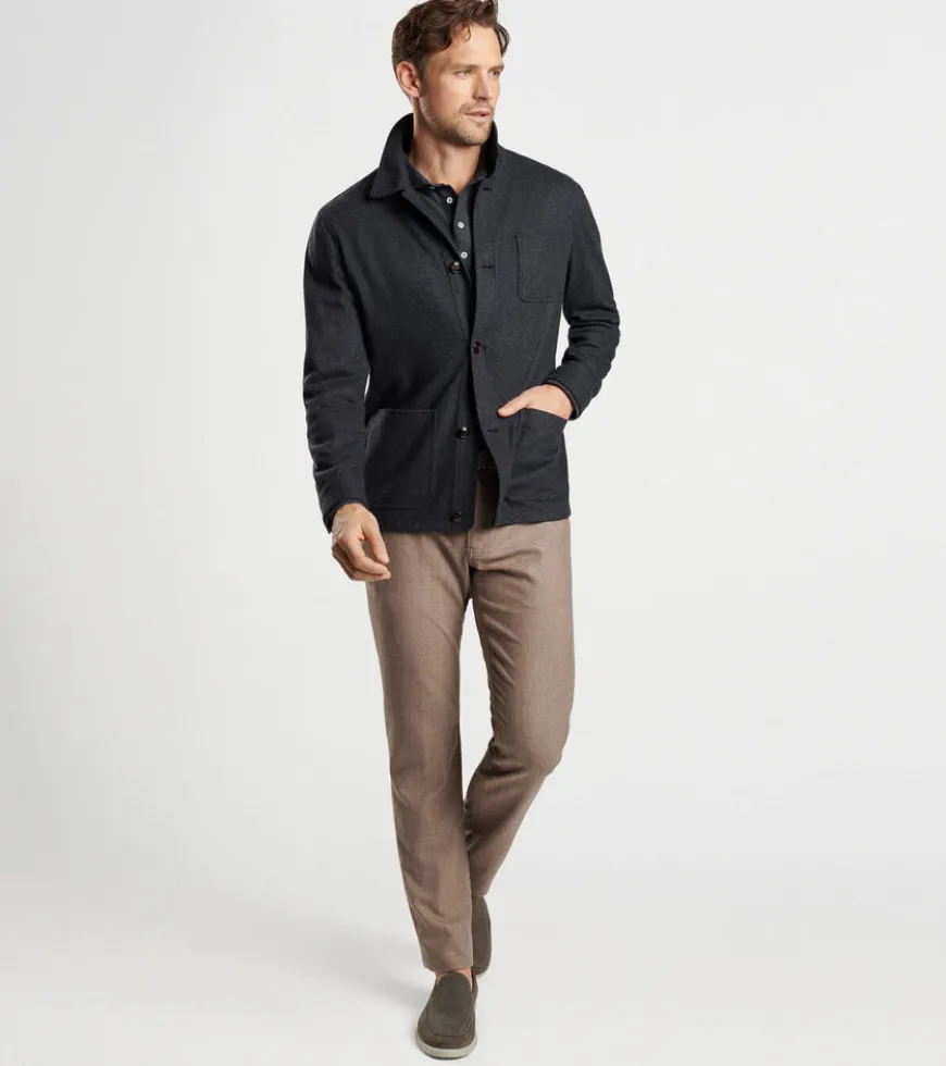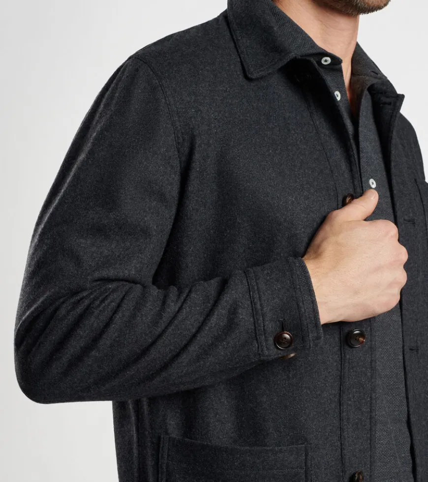 Crafted from the world’s finest cashmere, this piece merges the versatile silhouette of a chore coat with the luxurious feel of our Artisan Crafted series. An understated, beautifully detailed expression that handles indoor and outdoor wear with equal dexterity. Finished with genuine horn buttons.