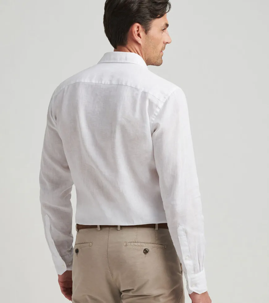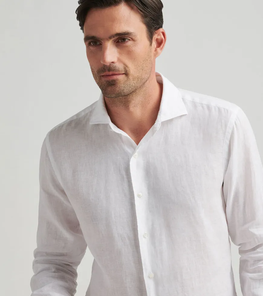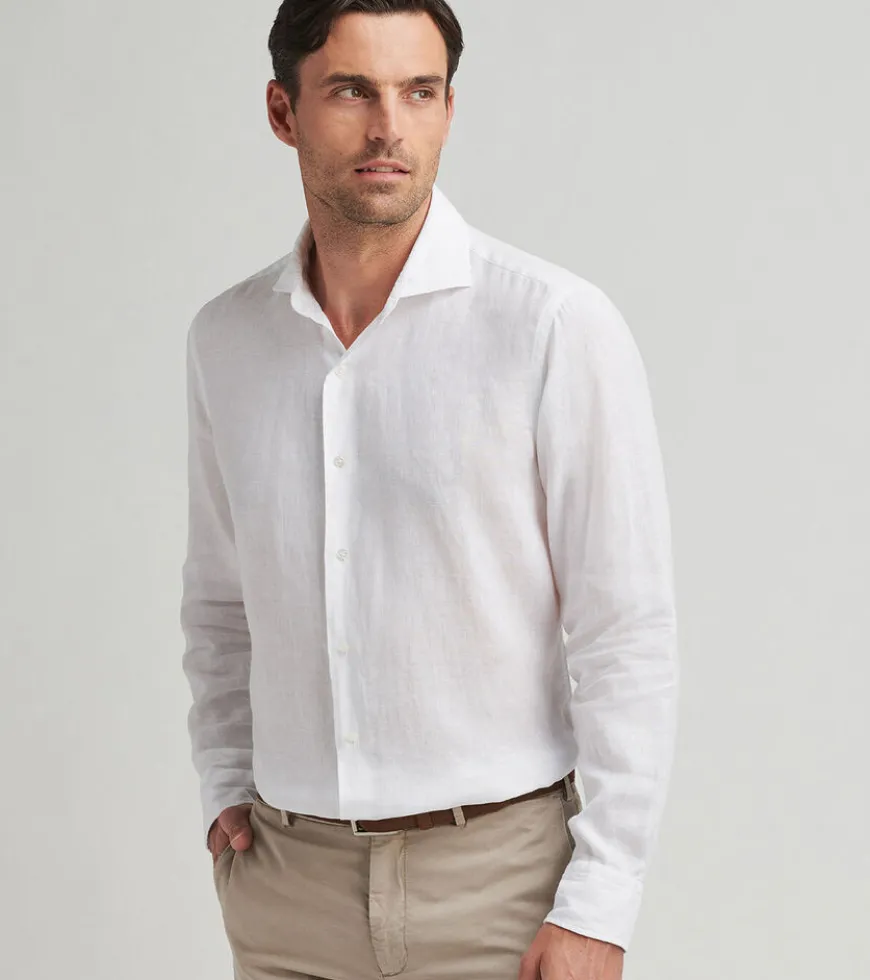 A casually refined expression that offers the classic character of fine Italian linen with a new finish that takes softness to the next level. This shirt features délavé yarns for a subtly unique color expression. Finished with a spread collar, French placket and mother-of-pearl buttons for an added touch of elegance.