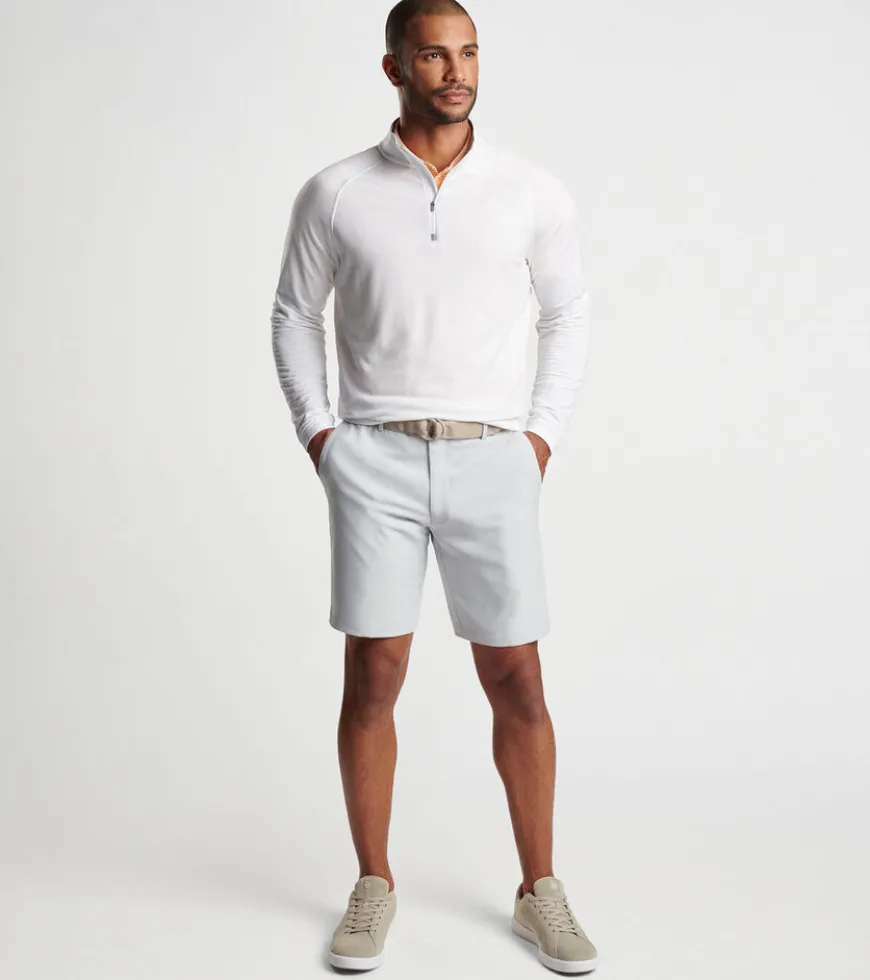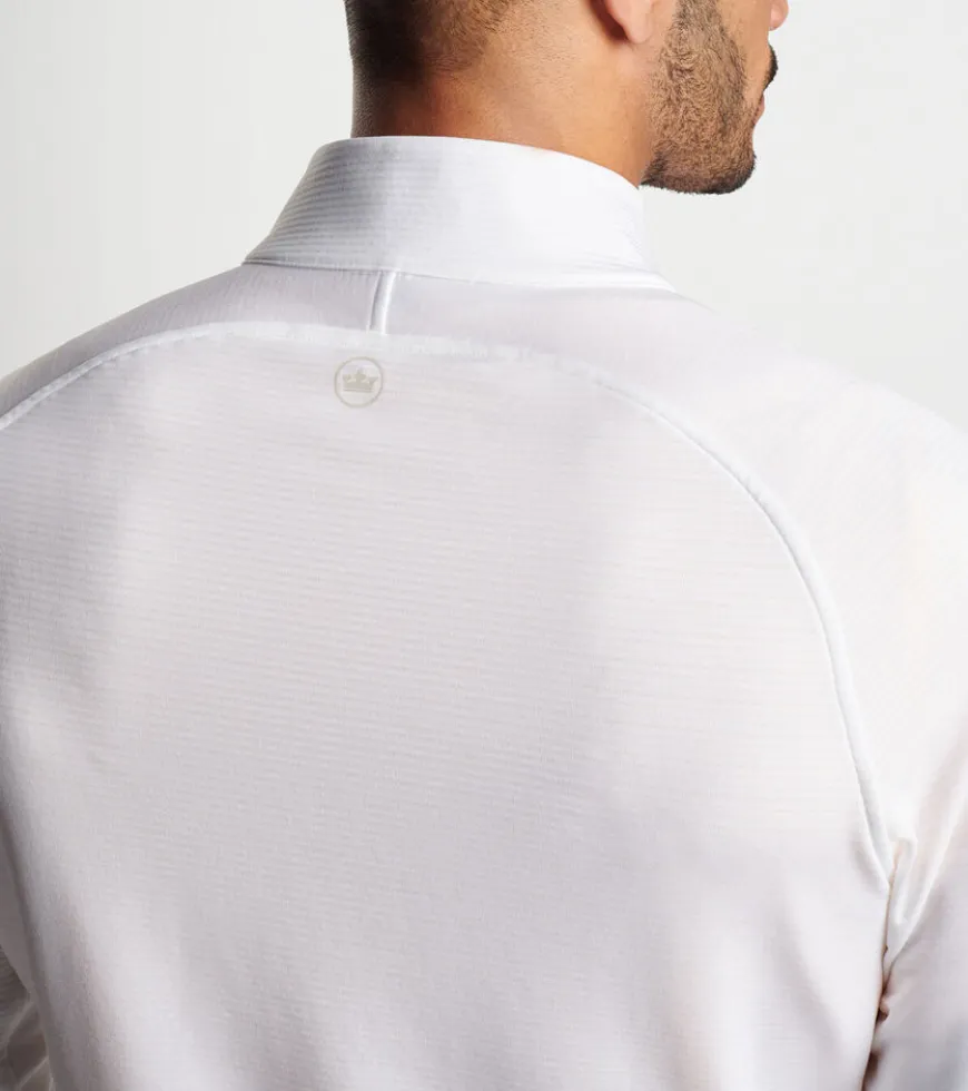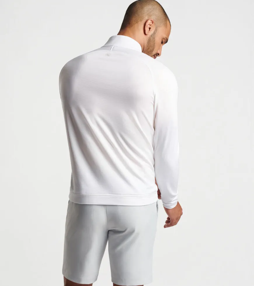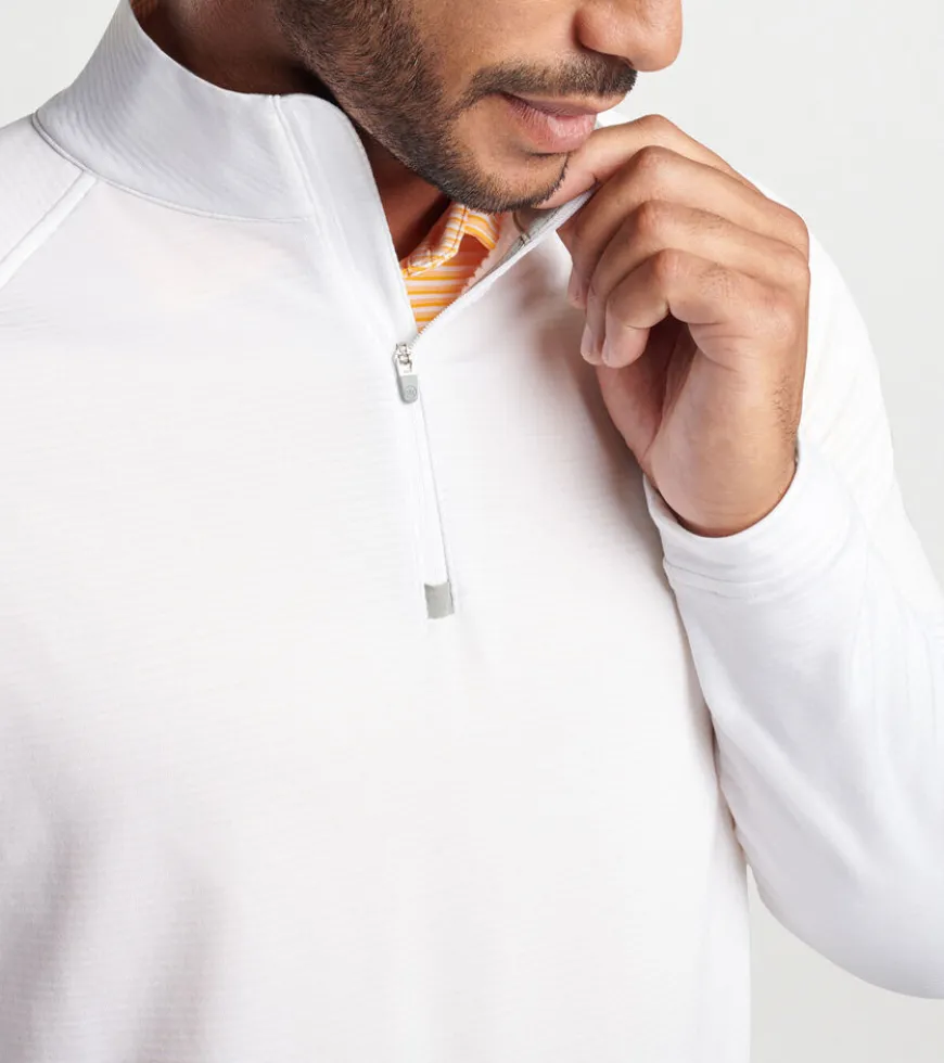 This lightweight pullover is the ideal layer for cool weather on and off the course. It features performance properties like four-way stretch, wicking and easy-care, while a ribbed fleece interior delivers softness, warmth and breathability.