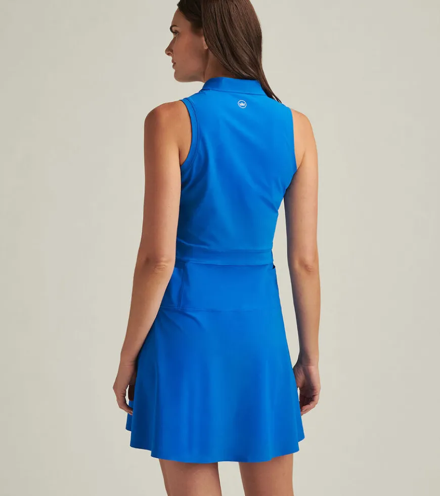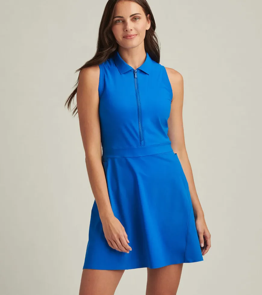 Feminine and sporty, this dress excels on the golf course or out and about. It’s shaped by a subtle, lightweight fabric developed with the same Italian mill as our men’s Bingham family that wicks moisture and stretches in all the right areas. It’s cut on the bias to lay flat against the body, and designed with a low-profile bonded collar and tonal front zipper. Comes with a separate shortie.