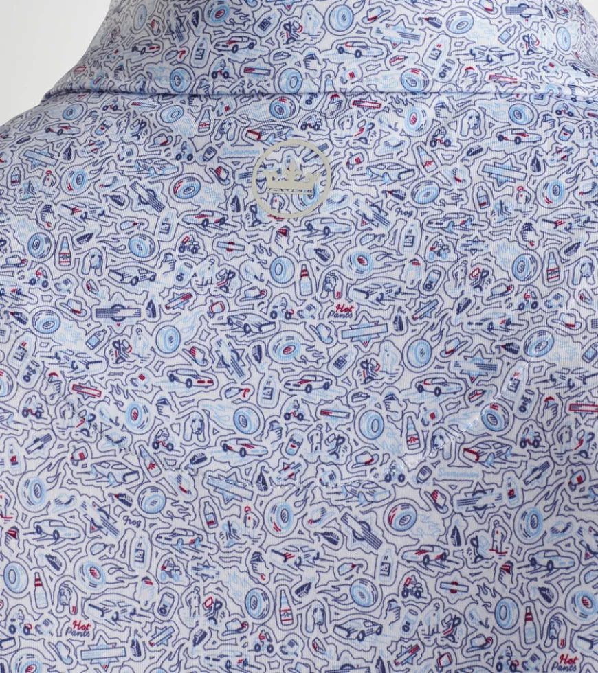 Enjoy incredible comfort wherever your day takes you in one of our signature performance polos. It’s made from a soft jersey fabric that features moisture-wicking, UPF 50+ sun protection, odor-resistance and easy-care, and four-way stretch for optimal mobility on and off the golf course. This polo features custom-designed print inspired by everyone’s favorite 1970s truck-driving comedy. Finished with a Sean self-fabric collar and three-button placket.