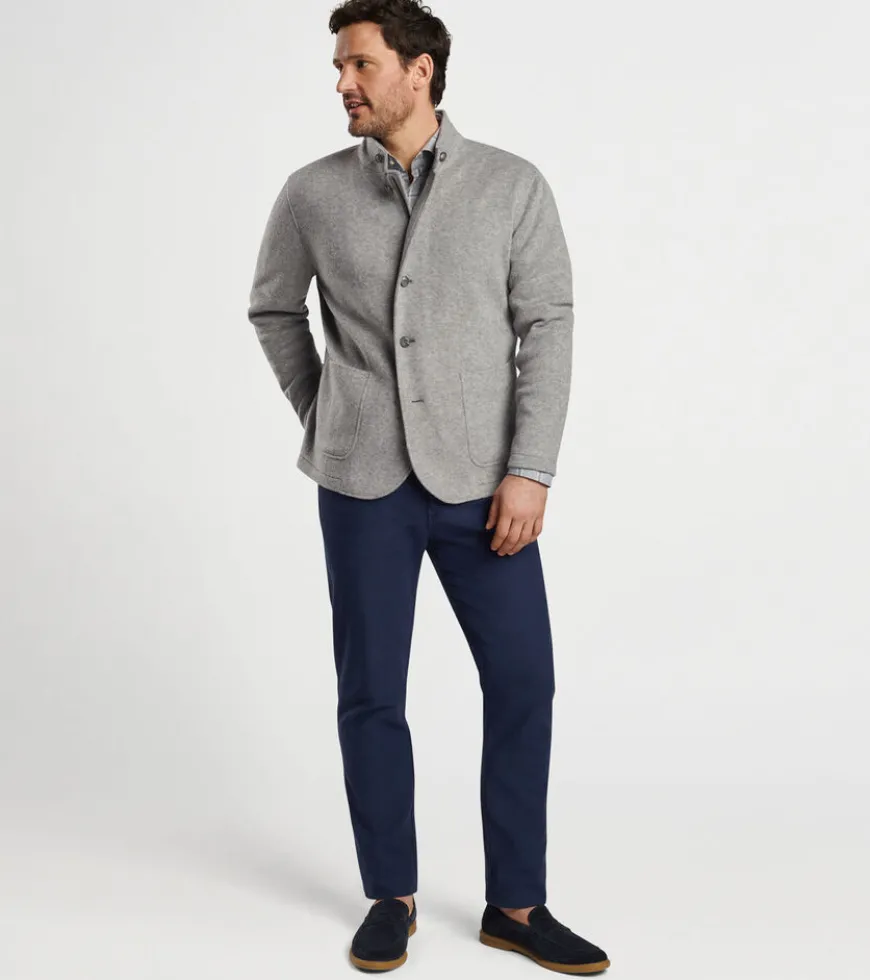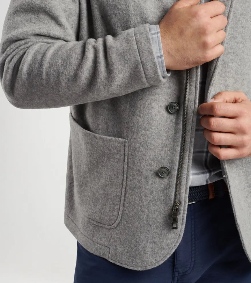 This clean, versatile layer features a stretch-knit Merino fabric and is designed to offer the classic style of a blazer and all-day comfort of a soft wool sweater. With lined sleeves that allow for easy layering, it’s finished with a two-way zip front, horn buttons and two front pockets.