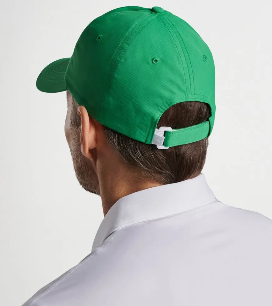 This Peter Millar performance hat is constructed from lightweight polyester that’s breathable and moisture-wicking for sun-filled days on the course or during a workout. Features an adjustable elastic loop closure for a fully custom fit and soft structured design.