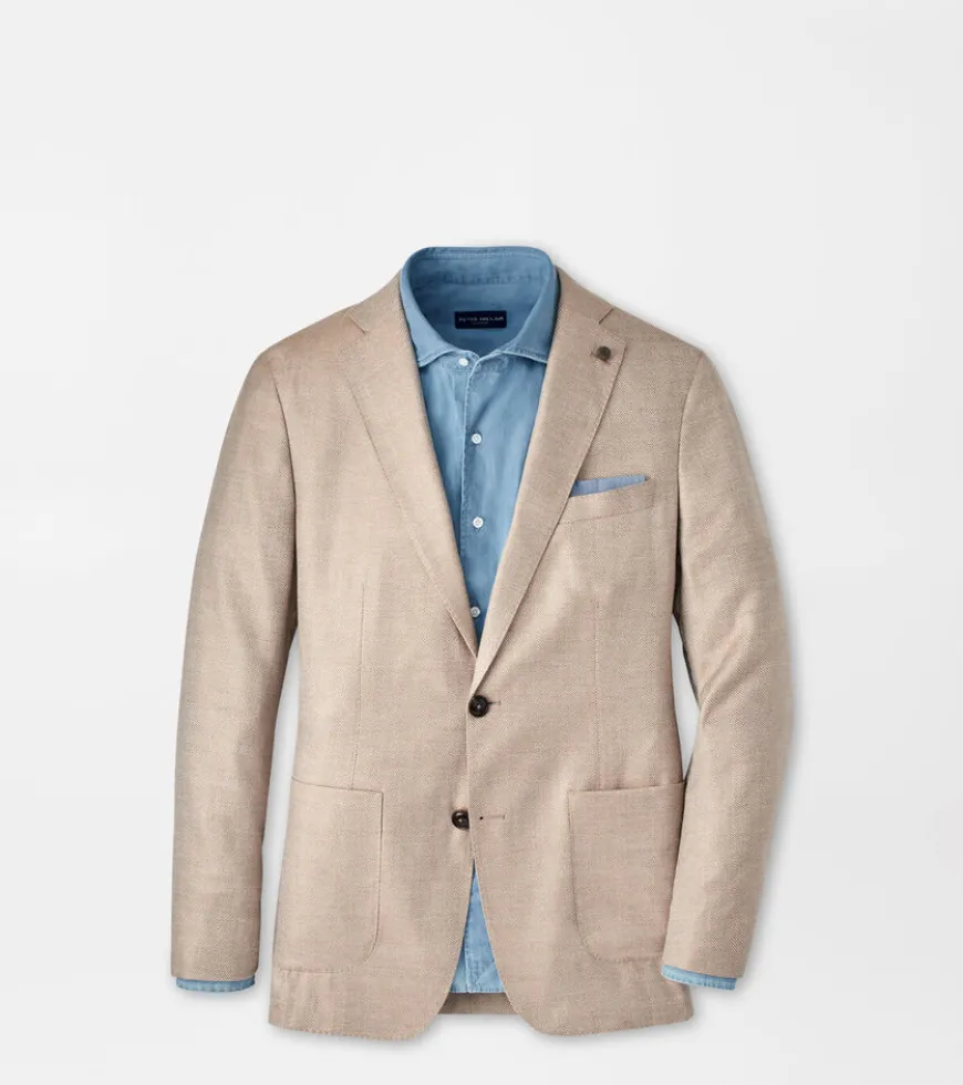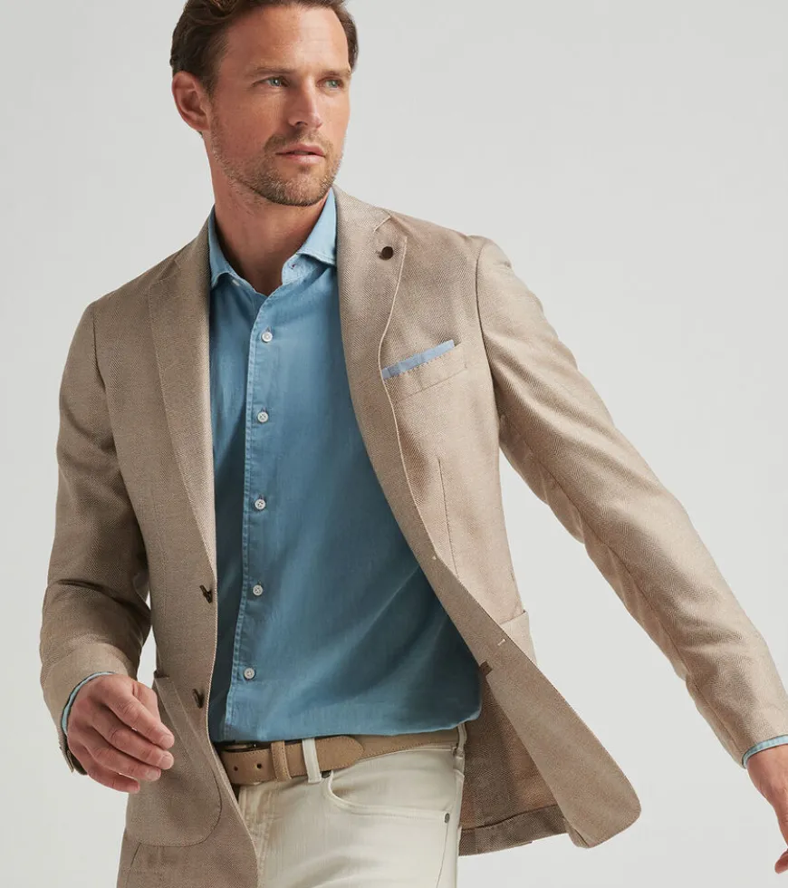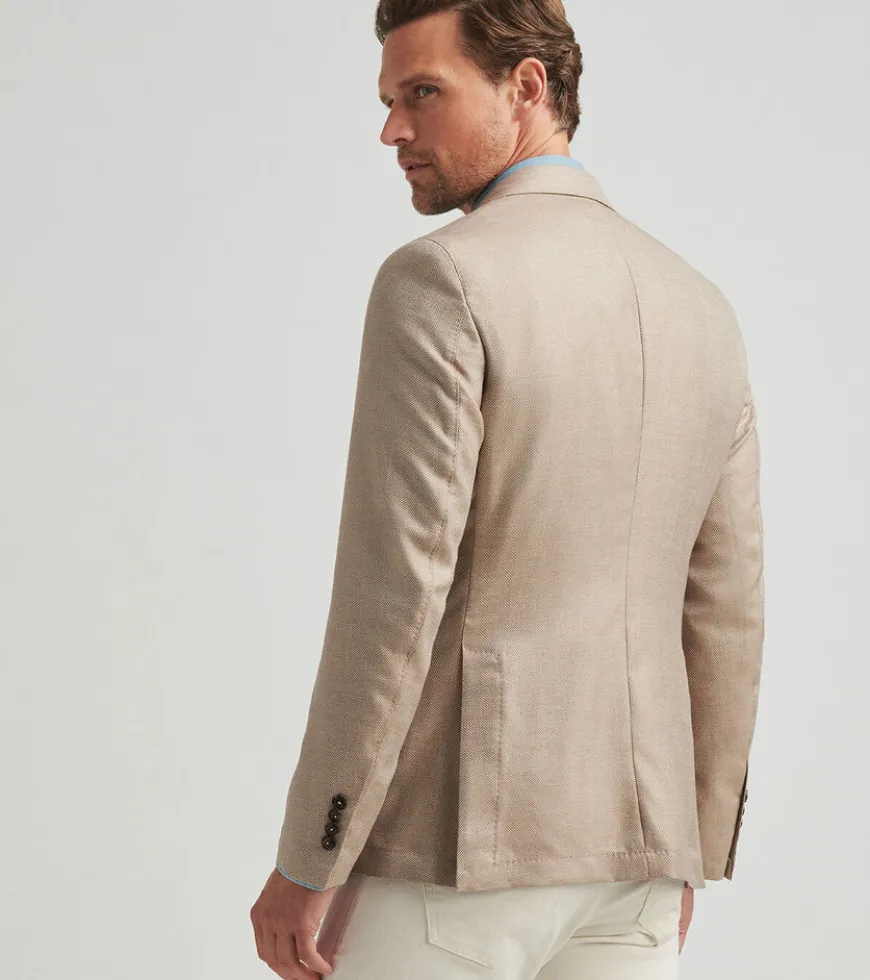 Crafted from a luxurious blend of Italian cashmere and silk, this soft jacket provides elevated style that can be dressed up or down. It’s cut with a with a natural shoulder and constructed with a half-lined interior and hint of stretch. Detailed with a notched lapel, barchetta chest pocket and teardrop buttonholes, and finished with a hand-tacked lapel pin and genuine Italian horn buttons.