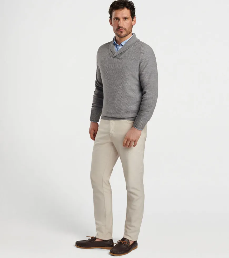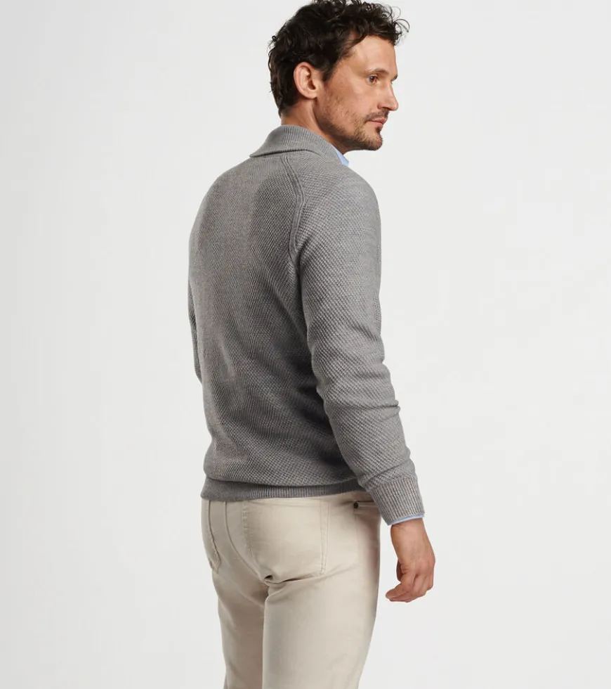 This classic crossover shawl sweater is a midweight design with a textured honeycomb knit in luxurious Merino wool. A signature go-to piece perfect for cool-weather style.
