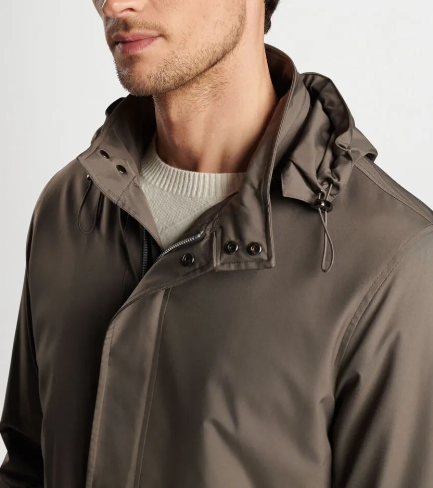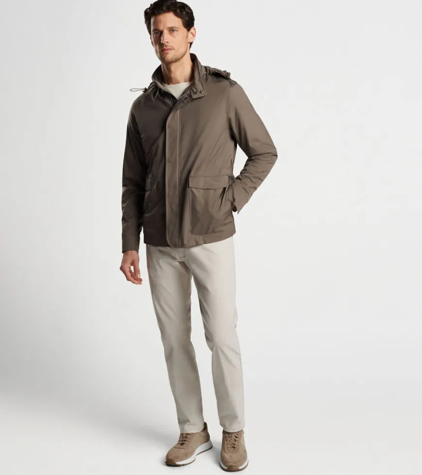 An icon of luxury innovation, our timeless Discovery jacket is crafted from a specially engineered performance twill fabric that’s wind and water-resistant with ideal stretch. A wrinkle-resistant, packable design incorporating a wide range of pockets makes it perfect for travel, while a low-profile hood can be rolled into a zippered pouch along the neckline.