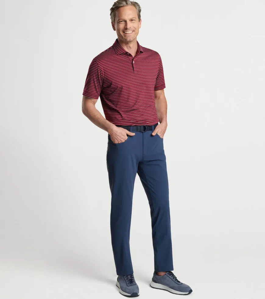 Crafted from a soft performance fabric with a luxurious feel, these versatile shirts take a more elevated approach with details like mother-of-pearl buttons. Designed in our Tailored Fit, this polo is finished with our Edwin Spread Collar and a two-button placket.