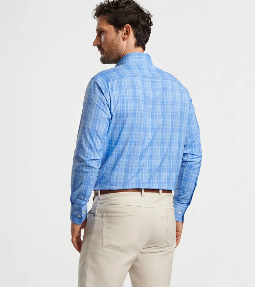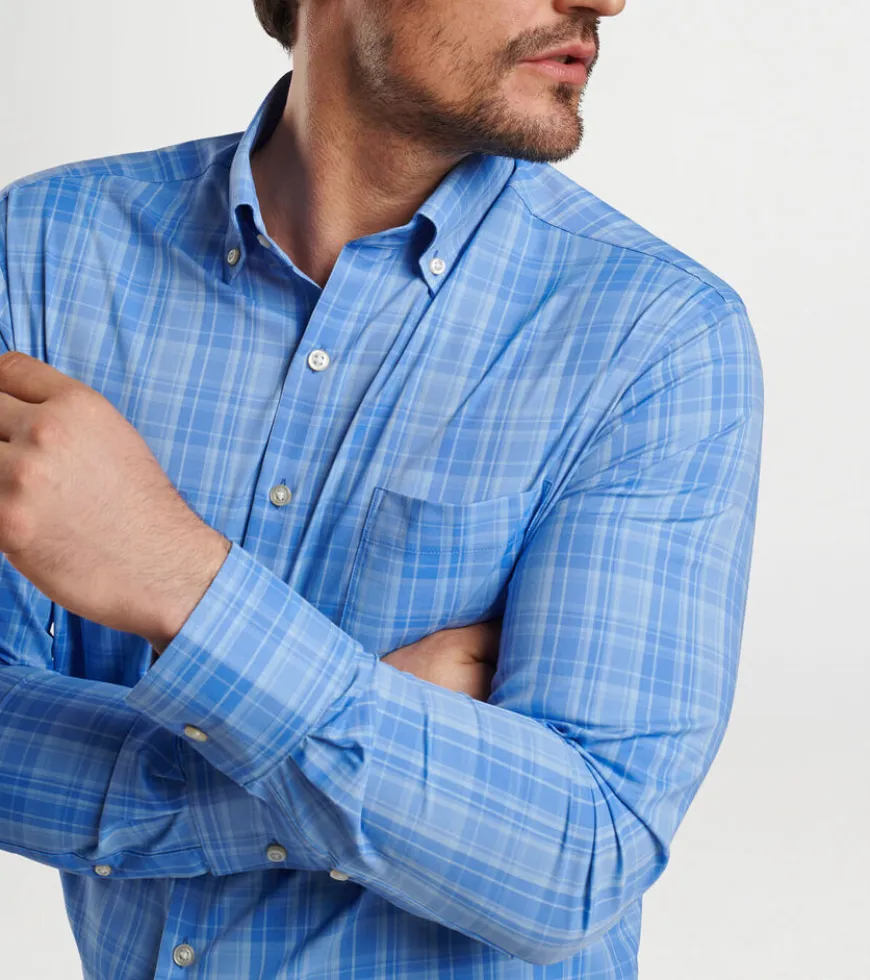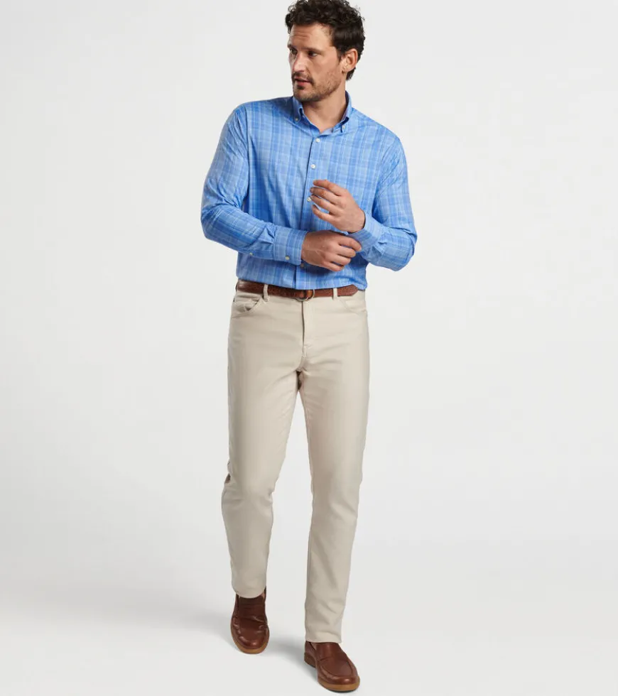 This modern favorite conveys the classic look of a twill shirt in an easy-care performance fabric that offers two-way stretch, wicking and UPF 50+ sun protection. Finished with a button-down collar, French placket and double-button barrel cuffs.