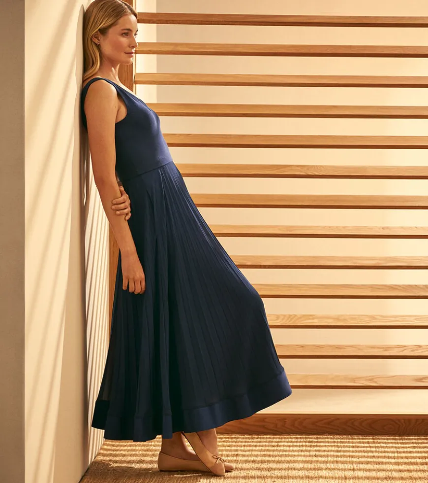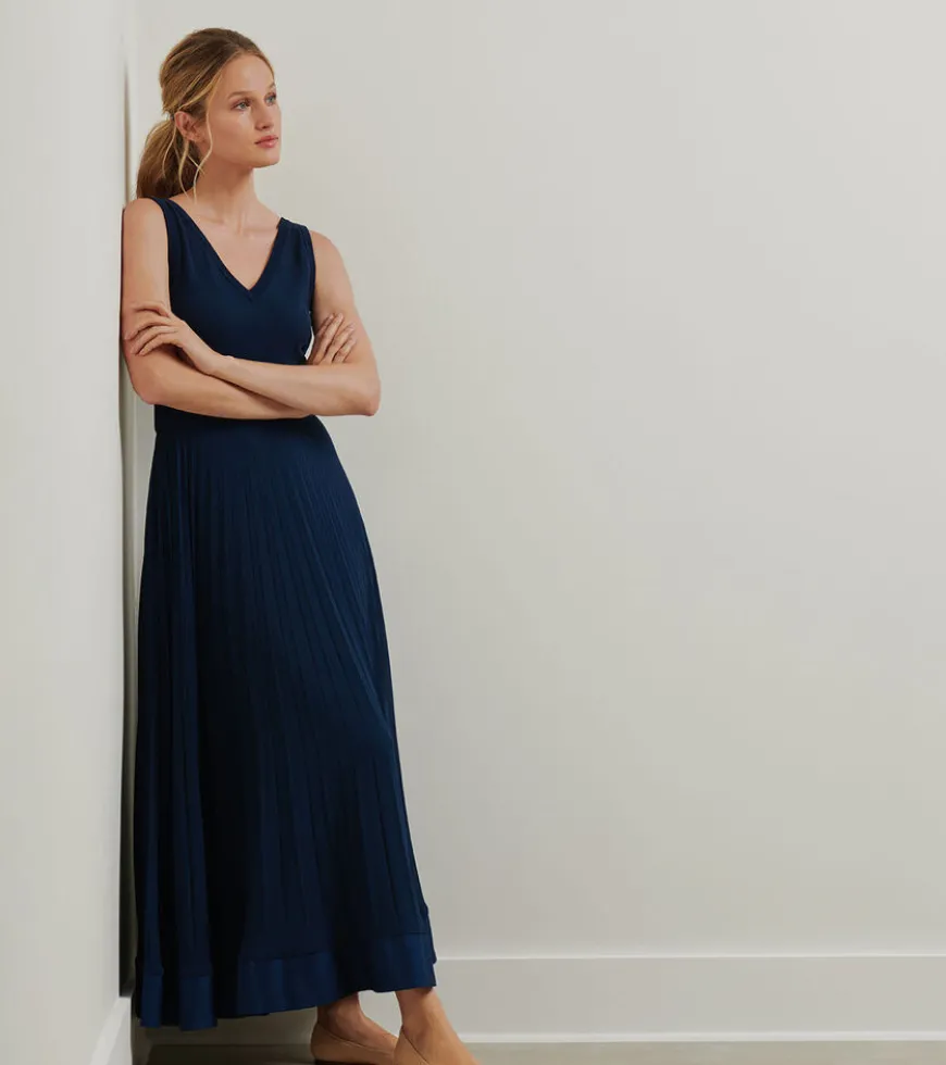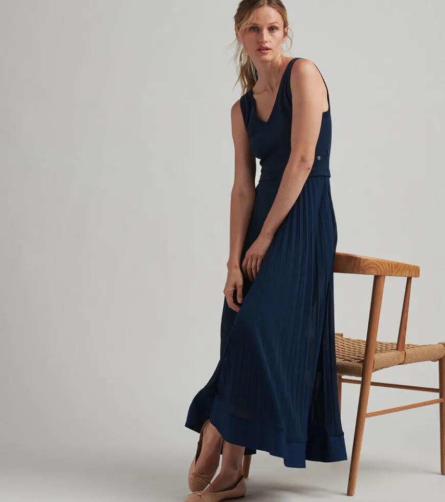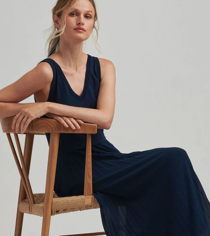 An all-new easy-to-wear dress that’s appropriate for a variety of occasions. A 50/50 blend of breathable cotton and viscose shapes the V-neck knit top, while a flowing chiffon fabric with a poplin hem frames the skirt. Side pockets and a self-fabric chiffon lining complete a thoughtful, versatile design.
