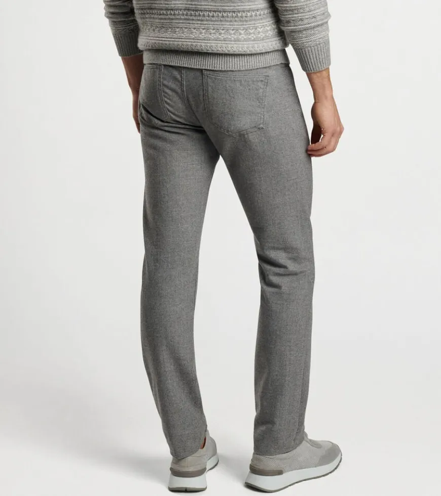 This seasonal style blends the aesthetics of a refined trouser with the casual comfort and design of an everyday five-pocket. They’re crafted from a fine Merino wool from Italy, featuring natural stretch and a water-resistant finish.