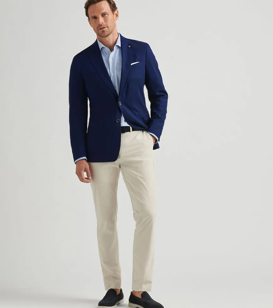 The Excursionist Flex Blazer is crafted with a wool-silk blend cloth from one of the most prestigious mills in Italy. This exceptional fabric features a hint of elastane for stretch and a water-resistant finish for protection from the elements. This blazer is half-lined for easy layering and comfort. Detailed with a notched lapel, barchetta chest pocket and teardrop buttonholes. Finished with hand-tacked lapel pin, smoked mother-of-pearl buttons and seven interior pockets.