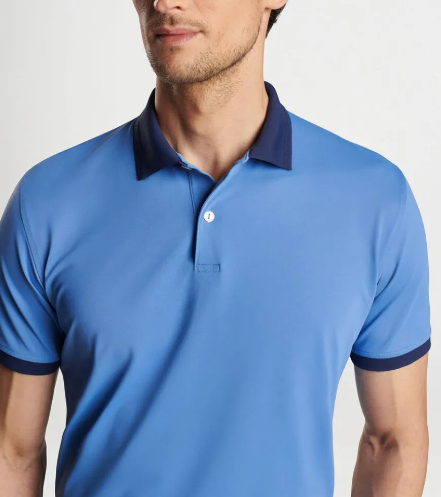 A stylish spin on our classic performance polos, this essential thrives on or off the golf course. With a mesh fabric designed to offer classic feel alongside modern functionality, it features four-way stretch, wicking and easy-care. A contrast collar and sleeve adds a disctinctive look, while luxurious mother-of-pearl buttons provide an elevated touch.