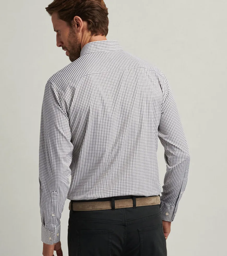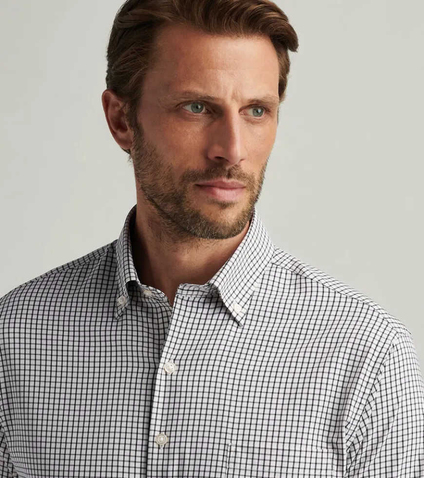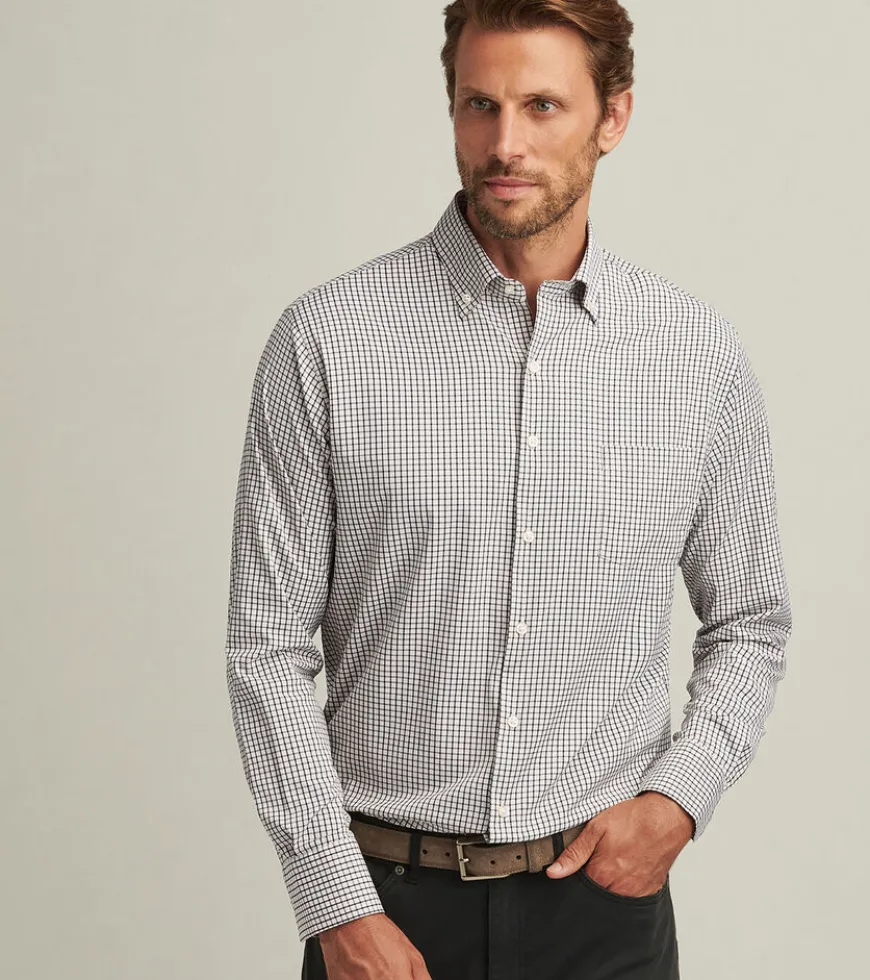 This sophisticated essential conveys the classic look of a twill shirt in an innovative, comfortable and versatile performance fabric. It features easy-care, two-way stretch, moisture-wicking and UPF 50+ sun protection. It features a classic check pattern and is finished with a button-down collar and a French placket.