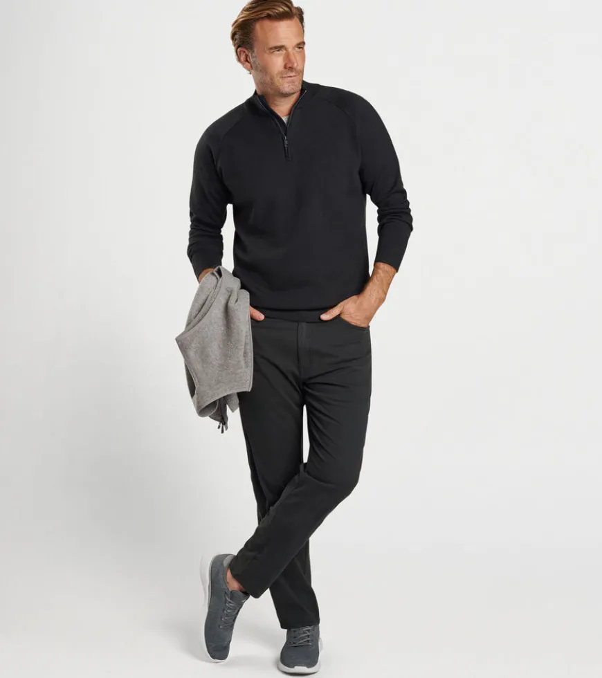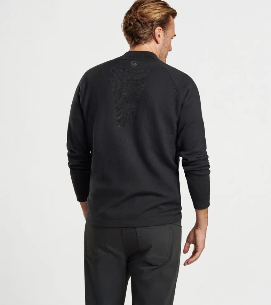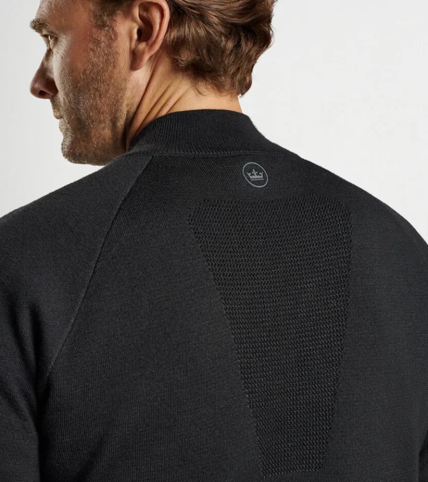 This new midweight quarter-zip sweater blends the softness of Merino wool and cotton with wicking performance yarn for the perfect intersection of classic feel and technical mobility. Finished with rib knit cuffs and hem.