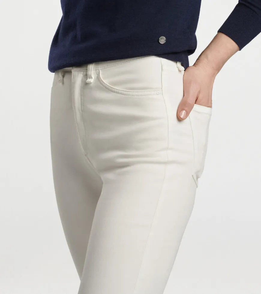 Our iconic Karlie pant is crafted from a soft, smooth cotton sateen fabric, with a comfortable hint of stretch. An 11″ rise sits comfortably at the natural waistline. Finished with a notched ankle hem.