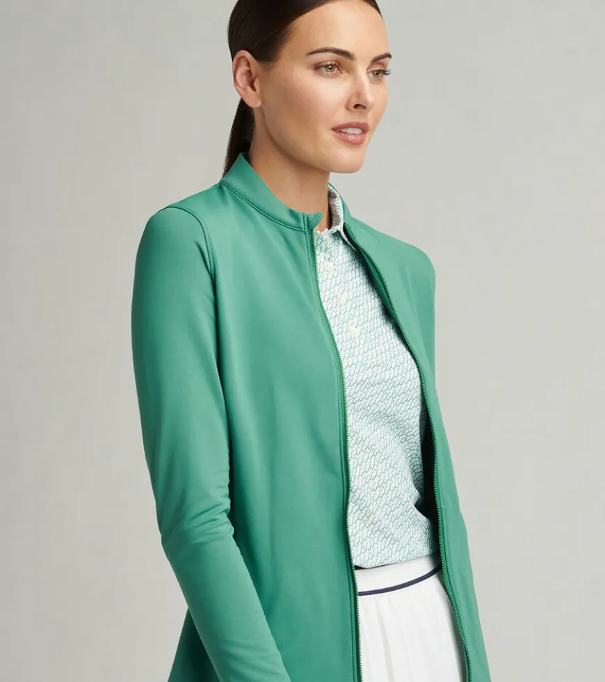 Designed with the golfer in mind, this full-zip features four-way stretch, wicking and easy-care. Crafted from our incredibly soft stretch loop terry fabric, it features a tapered collar and a two-way zip front for comfortable layering on and off the course.