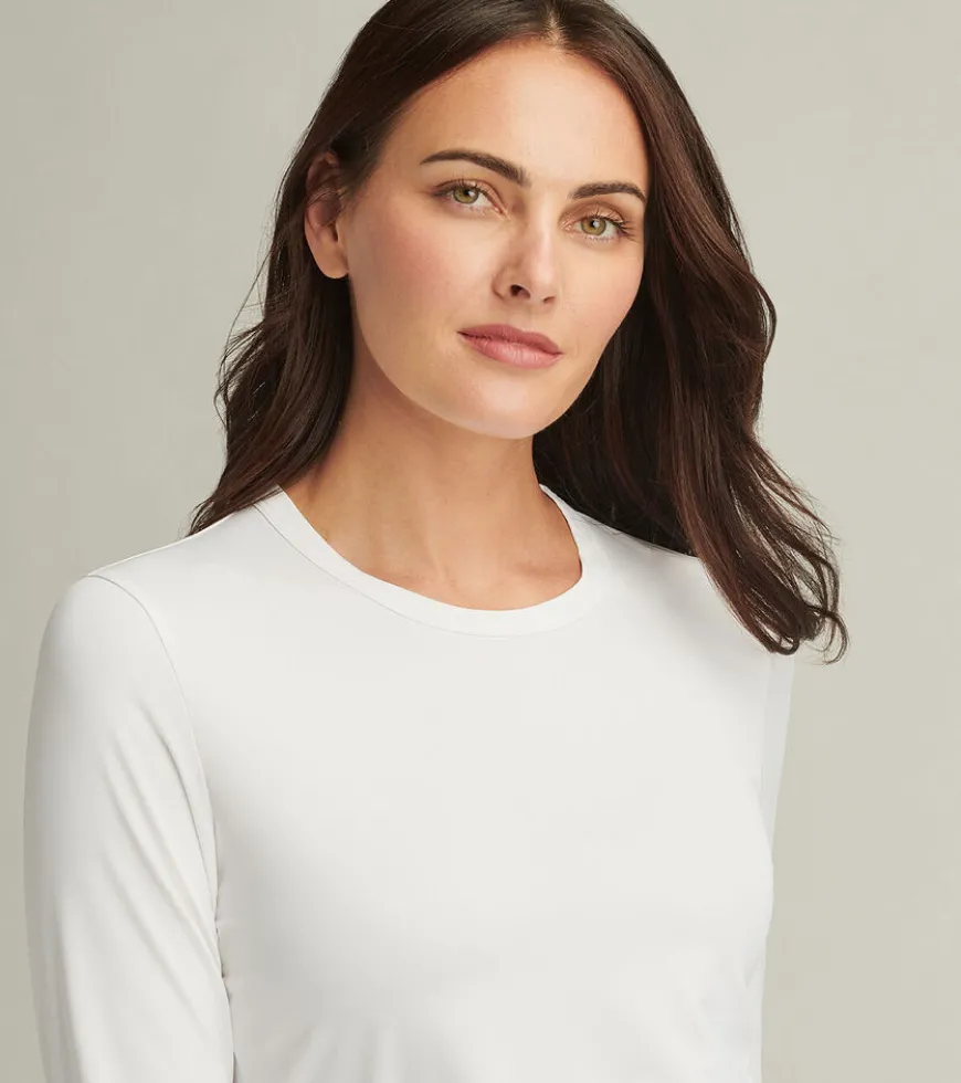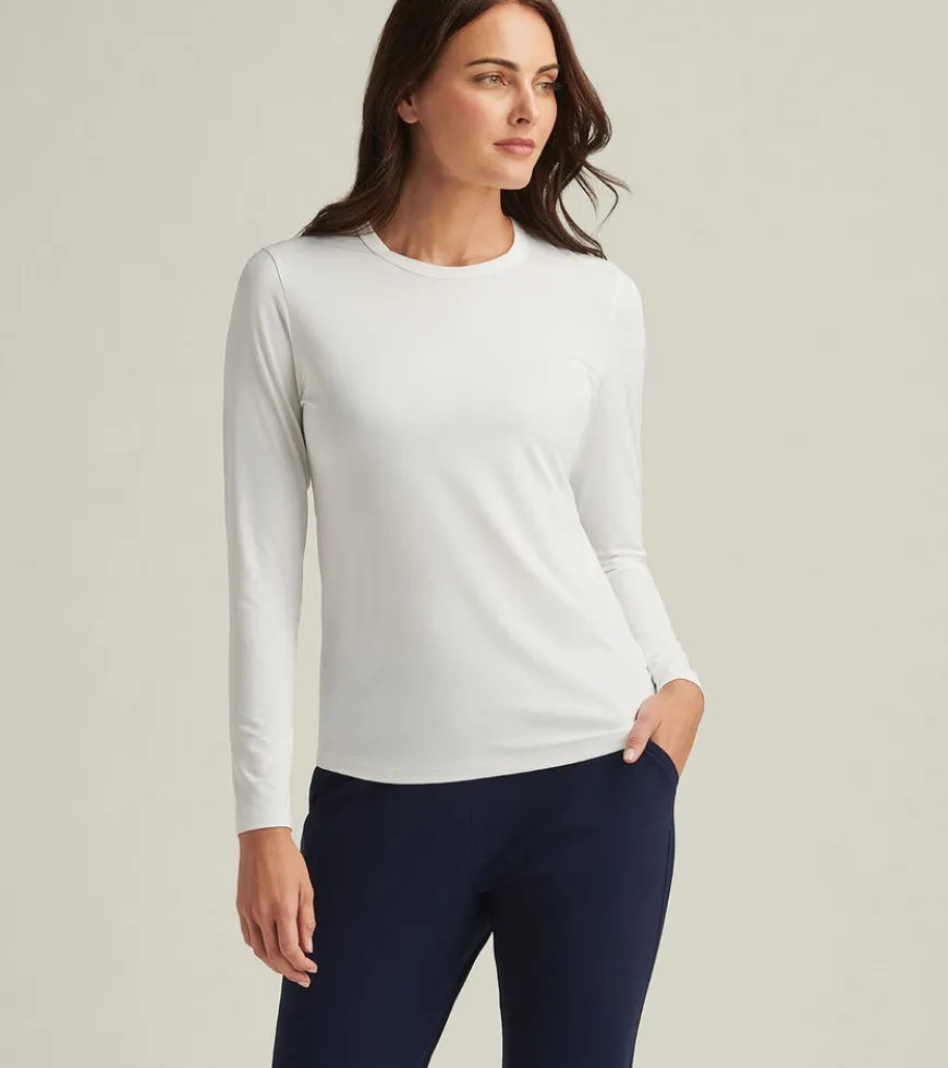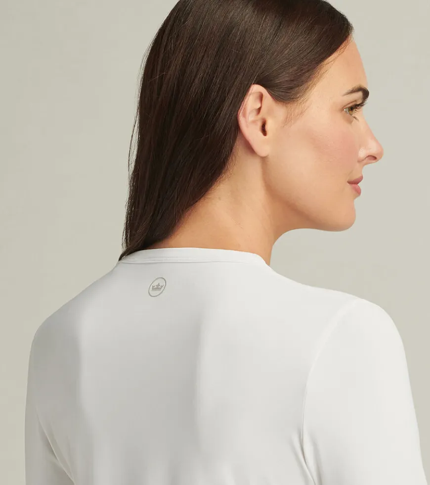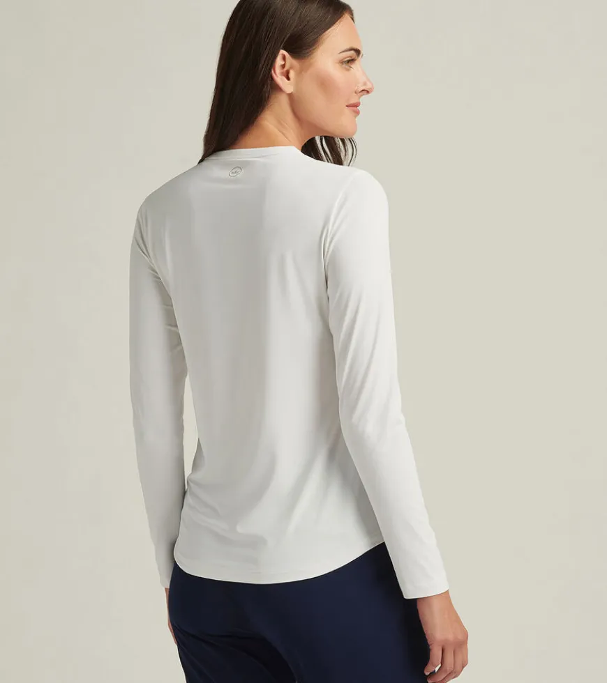 This lightweight sun shirt is the perfect base layer for outdoor activities. It’s designed with a crewneck and flattering curved collar and hem. High-gauge stretch jersey fabric is lightweight, soft and airy, with UPF 50+ sun protection.