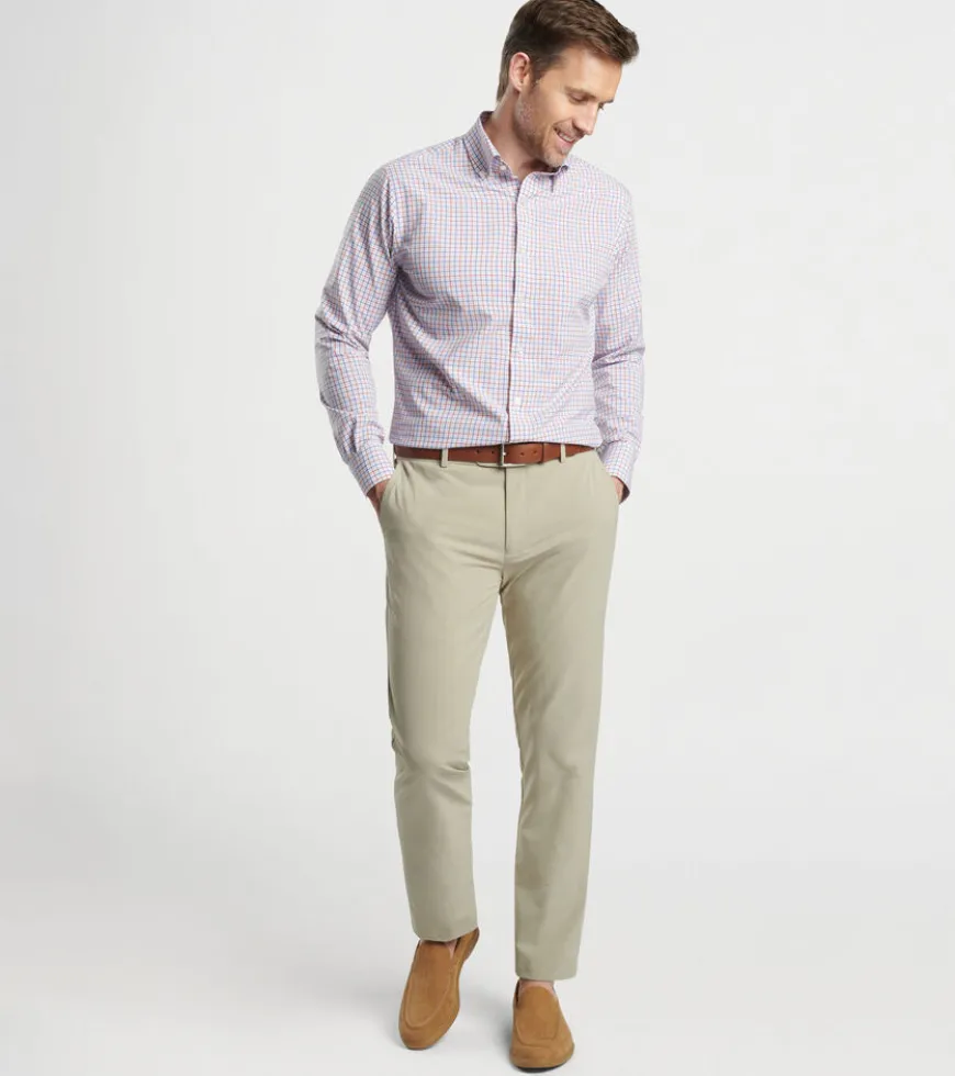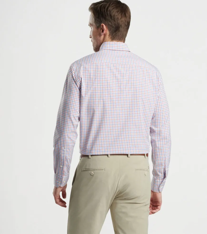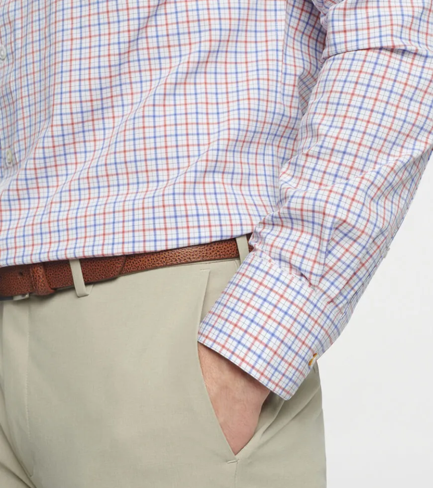 This sophisticated essential conveys the classic style of a poplin shirt in an innovative and comfortable performance fabric. It features an easy-care fabric that offers two-way stretch, wicking and UPF 50+ sun protection. Finished with a button-down collar, French placket and mitered cuffs.