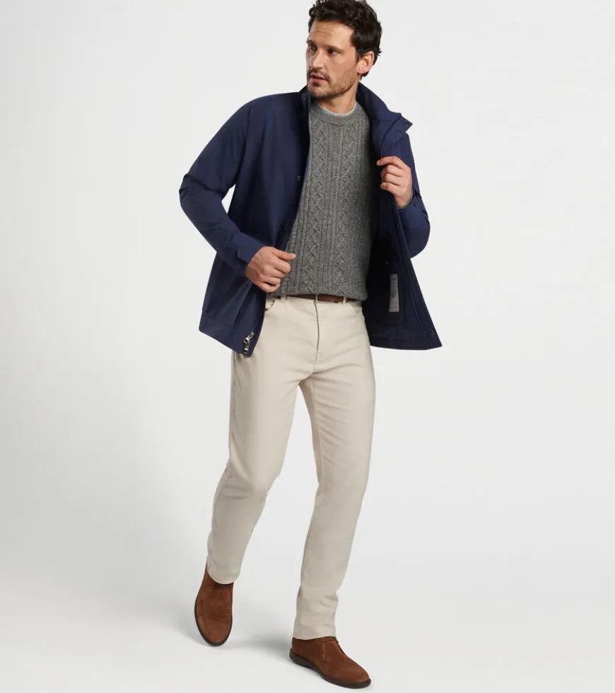 Taking an elevated approach to a versatile everyday design, our new Newport City Coat features a highly water-resisitant and windproof mélange fabric perfect for blustery days. A raglan sleeve construction and streamlined detailing provide a sophisticated modern look. Finished with a tonal two-way front zip and bellow pockets.