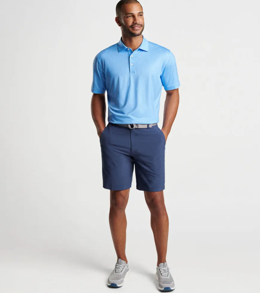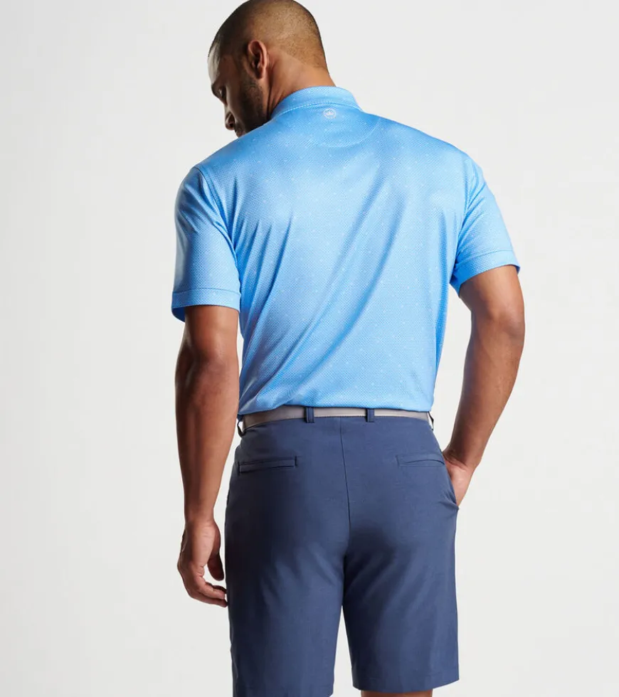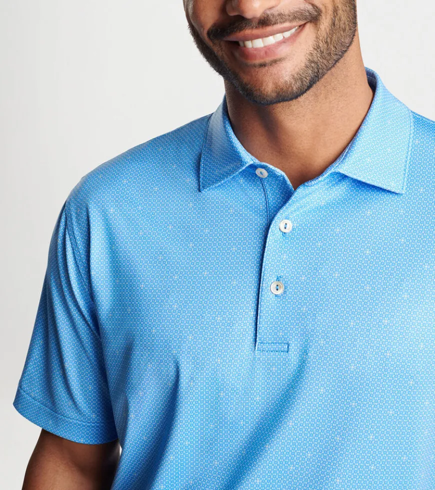 Summer is all the time in our performance jersey polos. These are packed with four-way stretch, wicking and UPF 50+ protection in our signature Summer Comfort fabrication. This polo features a custom-designed geometric print. Finished with a spread collar and three-button placket.