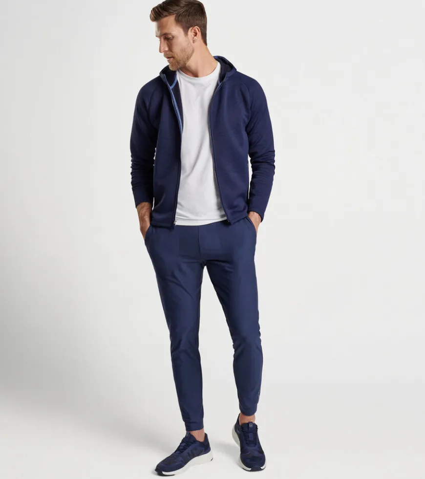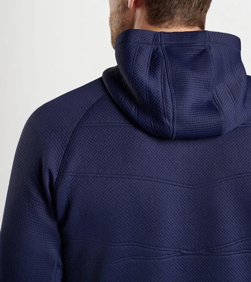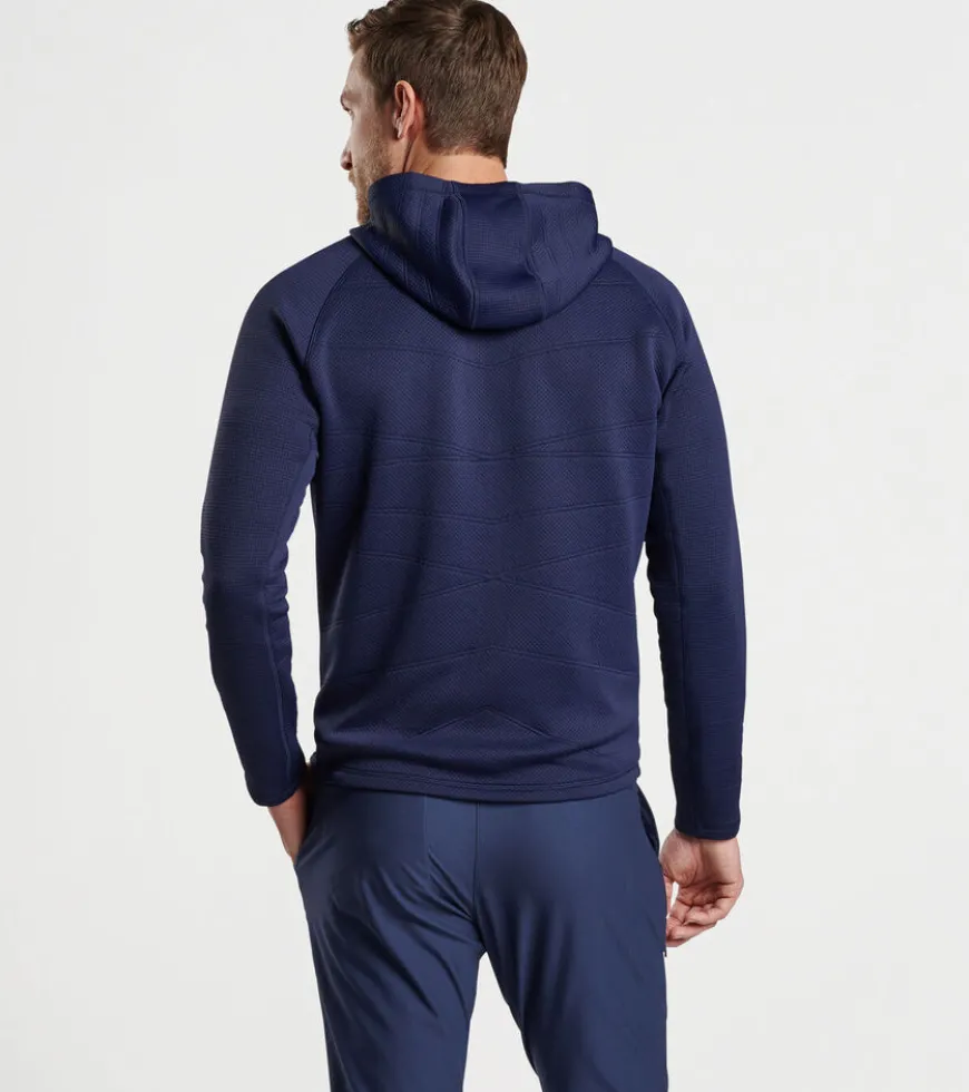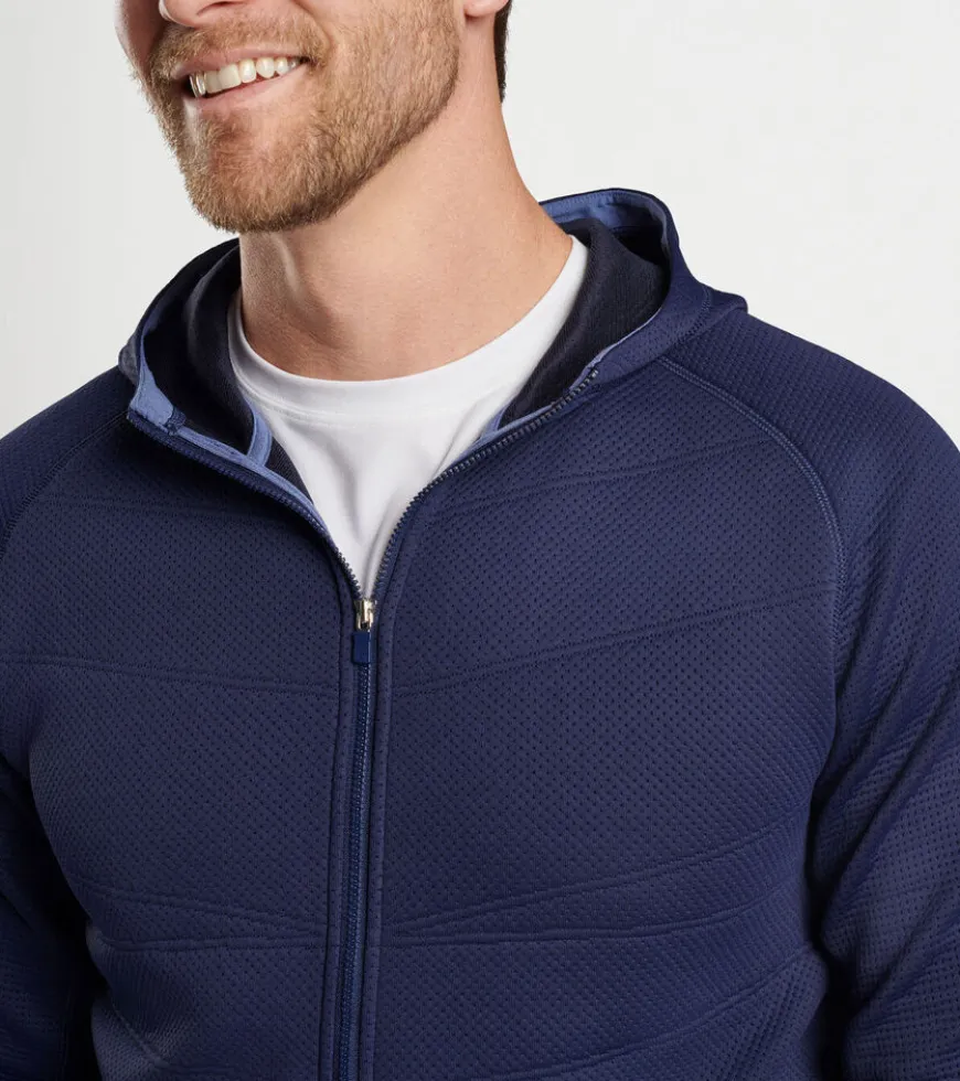 This full-zip hoodie is perfect for post-workout cool-downs or relaxing on the weekends. At the forefront of fabric innovation, this piece features fully fashioned front and back panels and incredible textural variety that showcases a modern edge. Performance benefits like four-way stretch and wicking provide incredible all-day comfort.