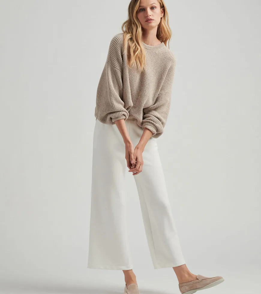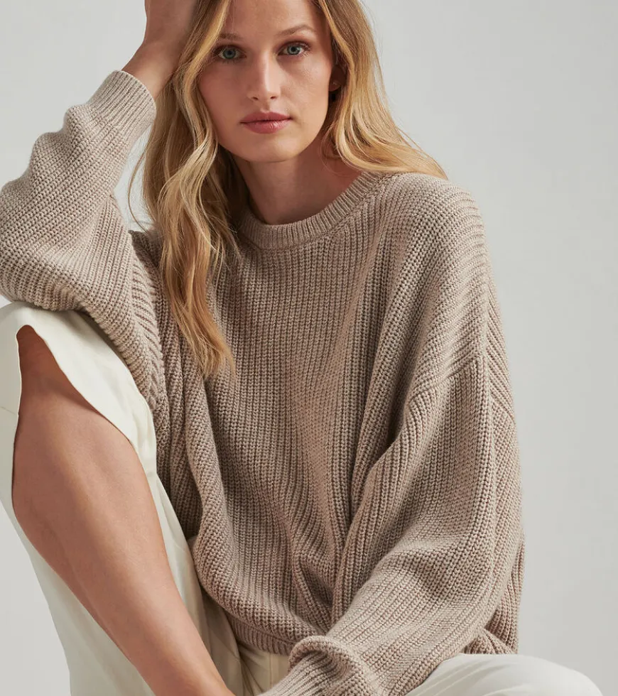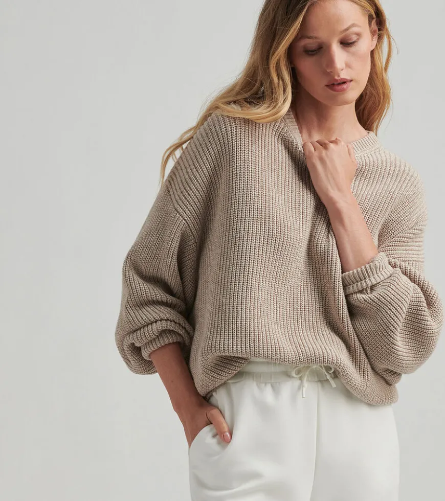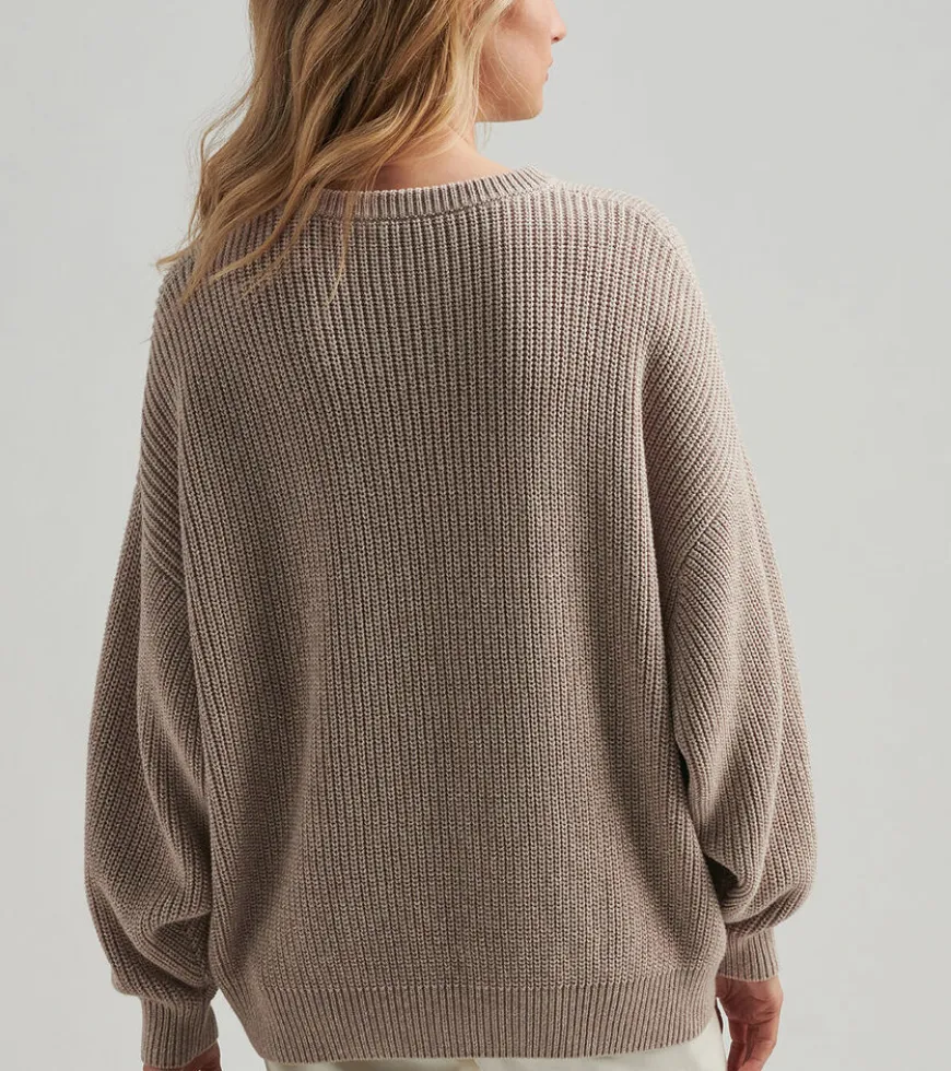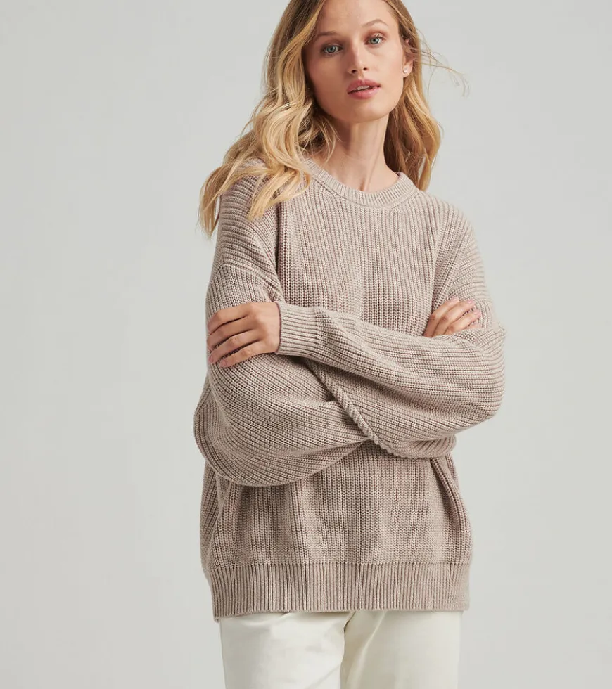 An oversized 5-gauge sweater that’s cozy and comfortable, knit from blend of cotton, nylon and silk. Bouncy and breathable while maintaining a substantial feel, it’s shaped by a two-color twisted yarn in a half-cardigan stitch for beautiful texture and depth of color.