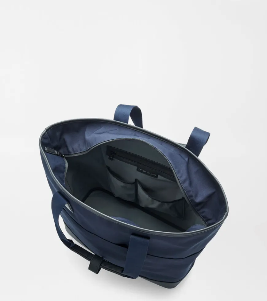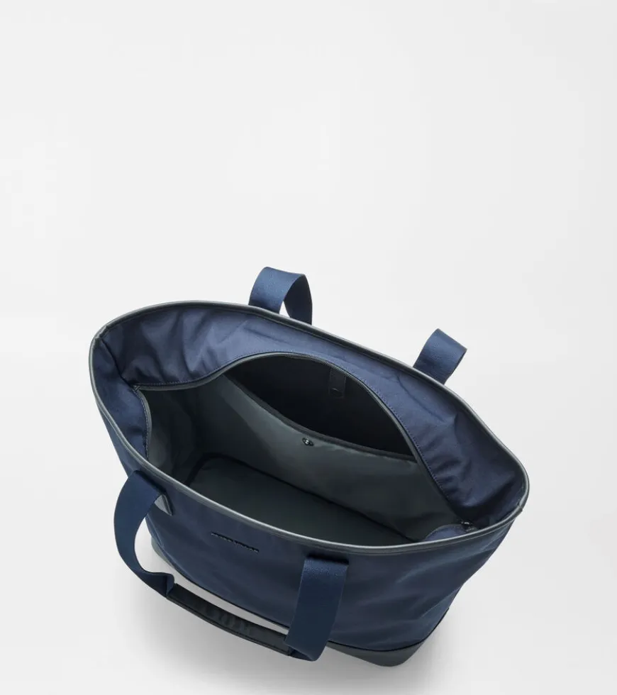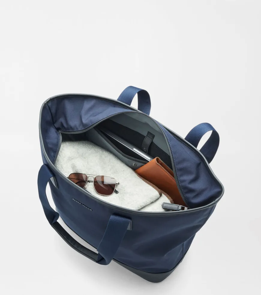 Head out in style with our all-new Pursuit luggage collection. This tote features a fine yet durable woven fabric, and works as both an everyday carry or a work bag with ample storage for all of your essentials. It features a padded interior laptop pocket as well as an expandable exterior zipper collar that allows for additional capacity. Finished with genuine leather trim.