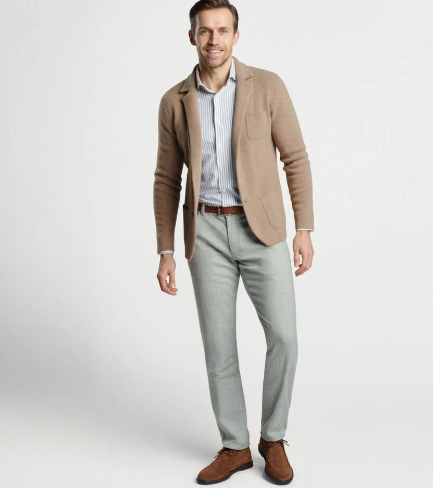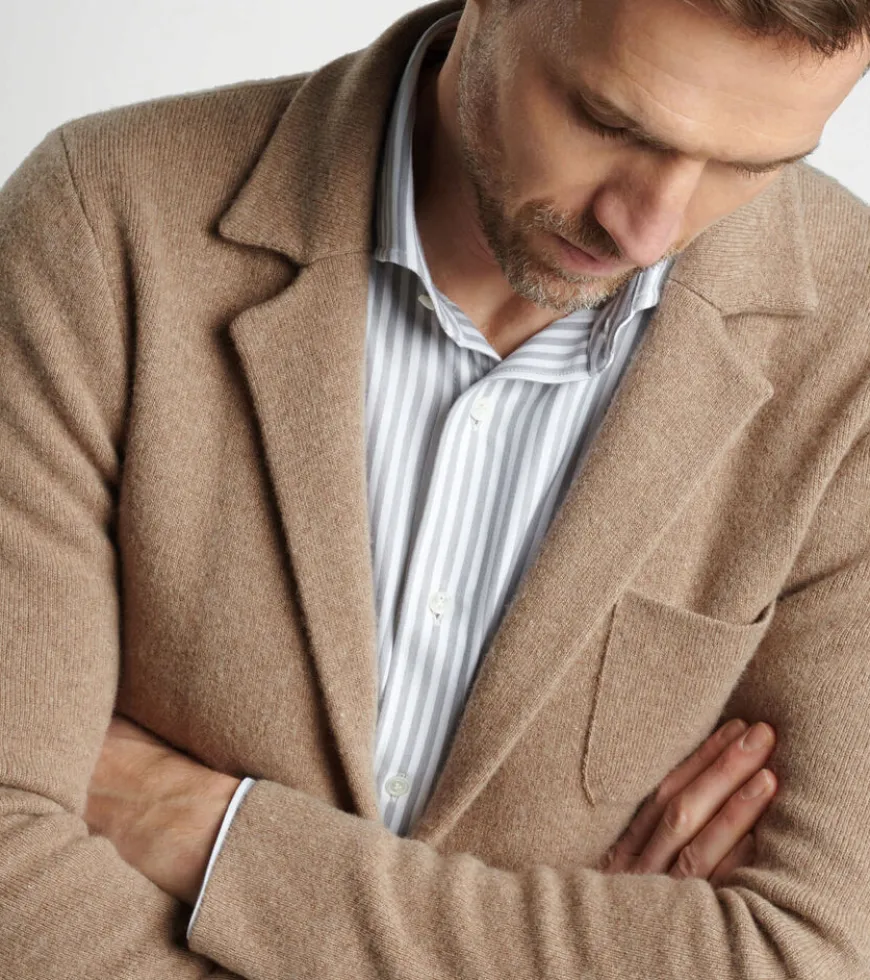 Blazer styling meets sweater softness. The Rooney is made from a luxurious blend of Merino wool and cashmere from Italy in a substantial 9 gauge knit with an elegant look and feel. Finished with Italian horn buttons, a chest pocket and two patch pockets.
