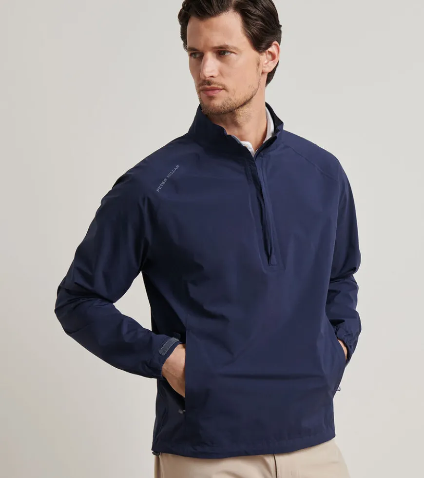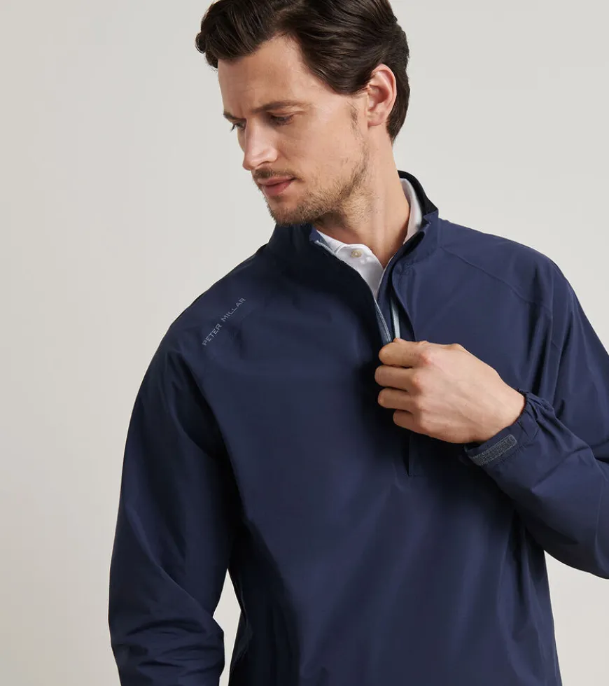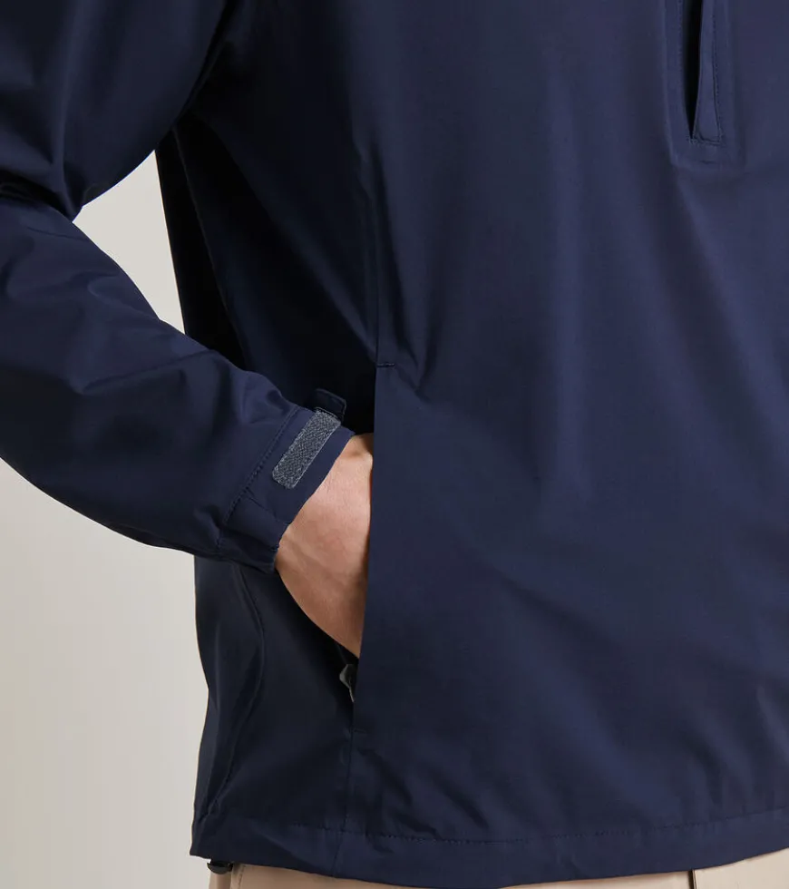 Engineered from a highly technical 2.5 layer performance fabric, the Hyperlight Shield Half-Zip is a go-to security piece offering fully waterproof, seam-sealed protection and optimal coverage in inclement weather. The lightweight Tour-tested fabric is supremely soft and comfortable with two-way mechanical stretch and easy-care benefits. A separate stow pouch allows it to be packed down tight and easily stashed in a golf bag or carry-on.