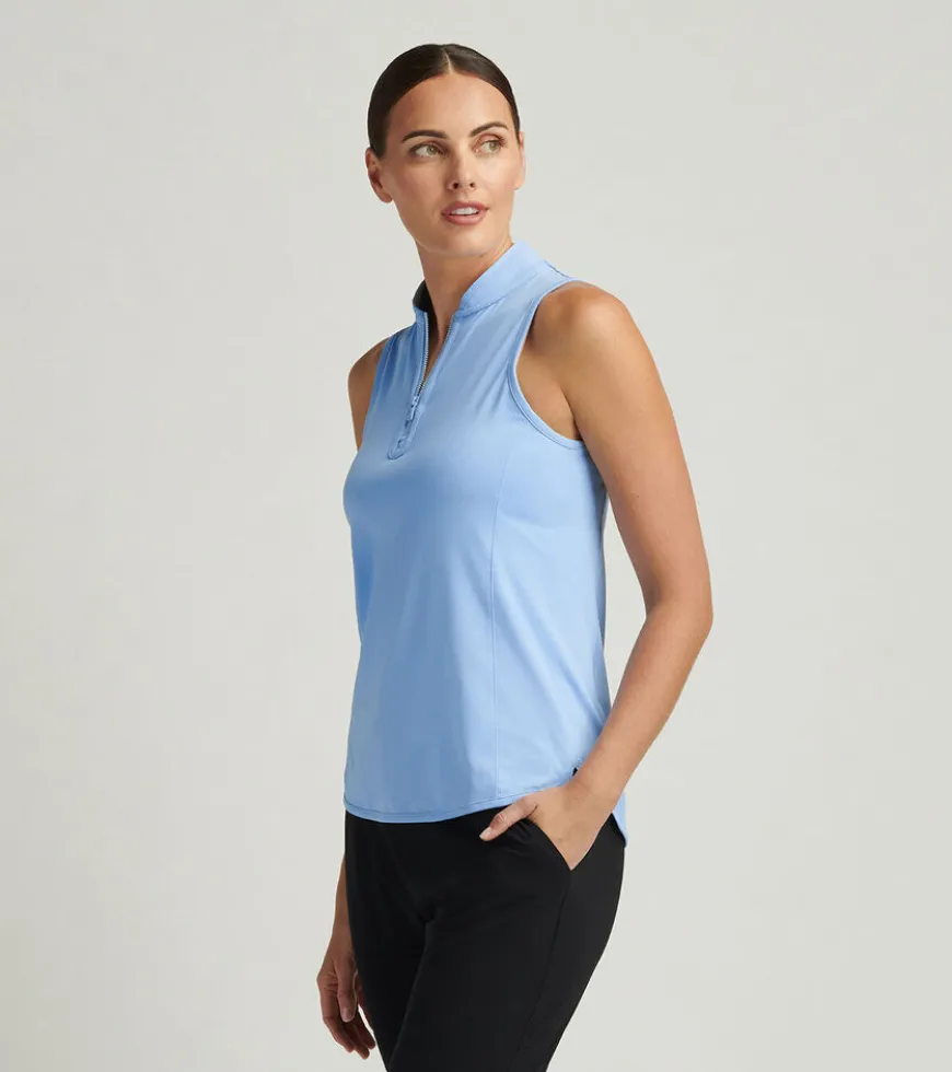 This sleeveless polo combines signature performance fabric and an elegant silhouette with fresh aesthetics. Four-way stretch, UPF 50+ sun protection, moisture- wicking, odor-resistance and easy-care properties make it perfect for on or off the course.