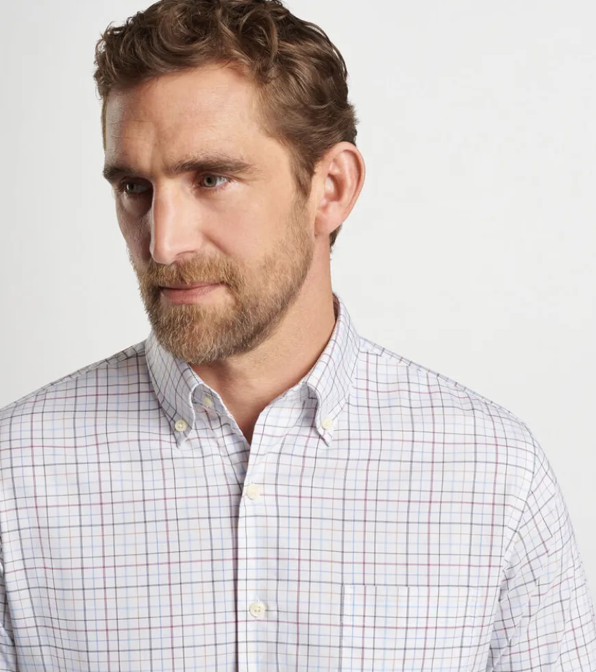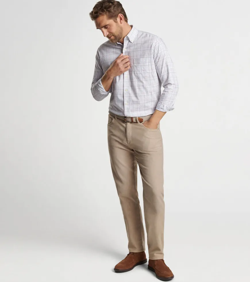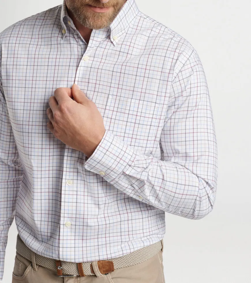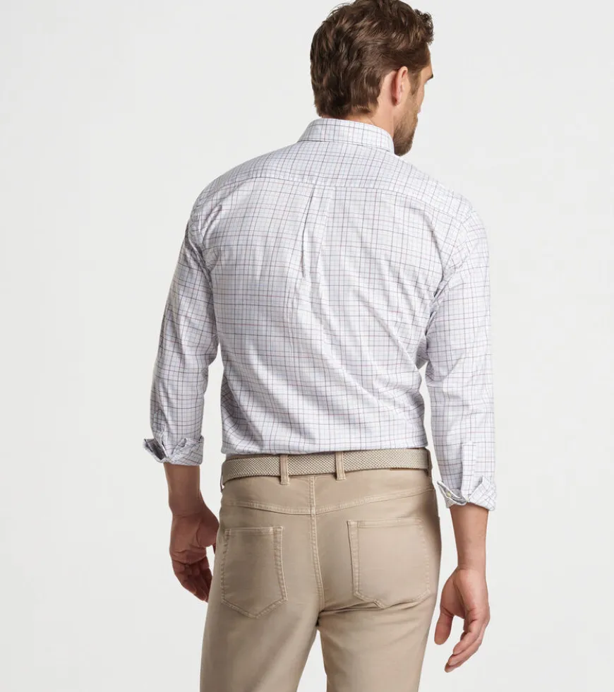 This twill sport shirt is made from breathable blend of cotton and performance yarns for stretch and softness. It’s finished with a button-down collar, French placket and double-button barrel cuffs.