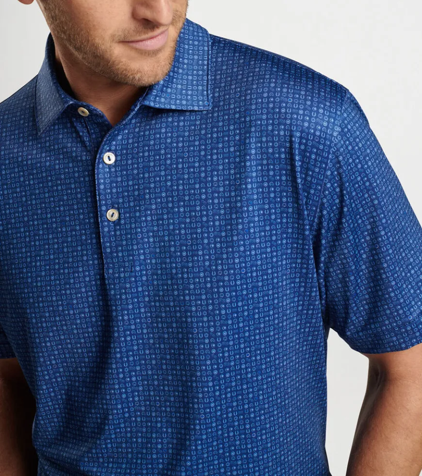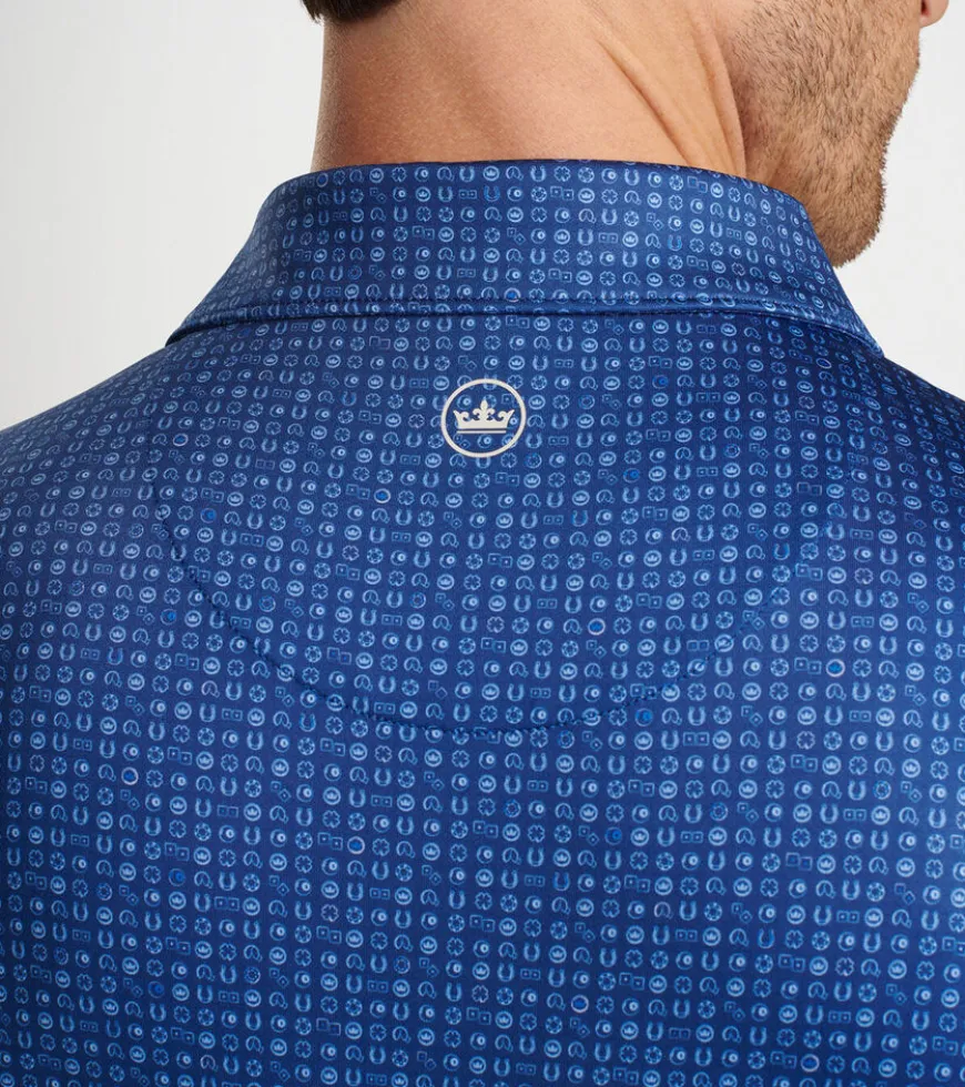 Summer is all the time in our performance jersey polos. These are packed with four-way stretch, wicking and UPF 50+ protection in our signature Summer Comfort fabrication. This polo features a custom-designed print inspired by games of chance. Finished with a spread collar and three-button placket.