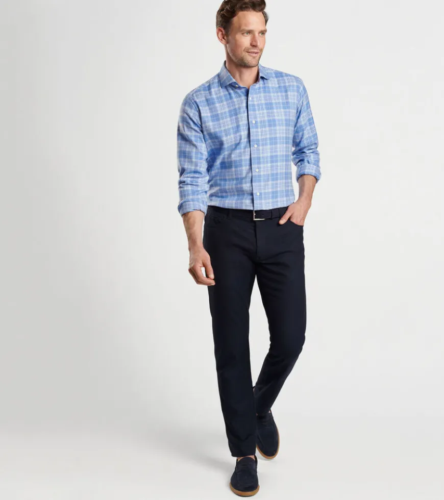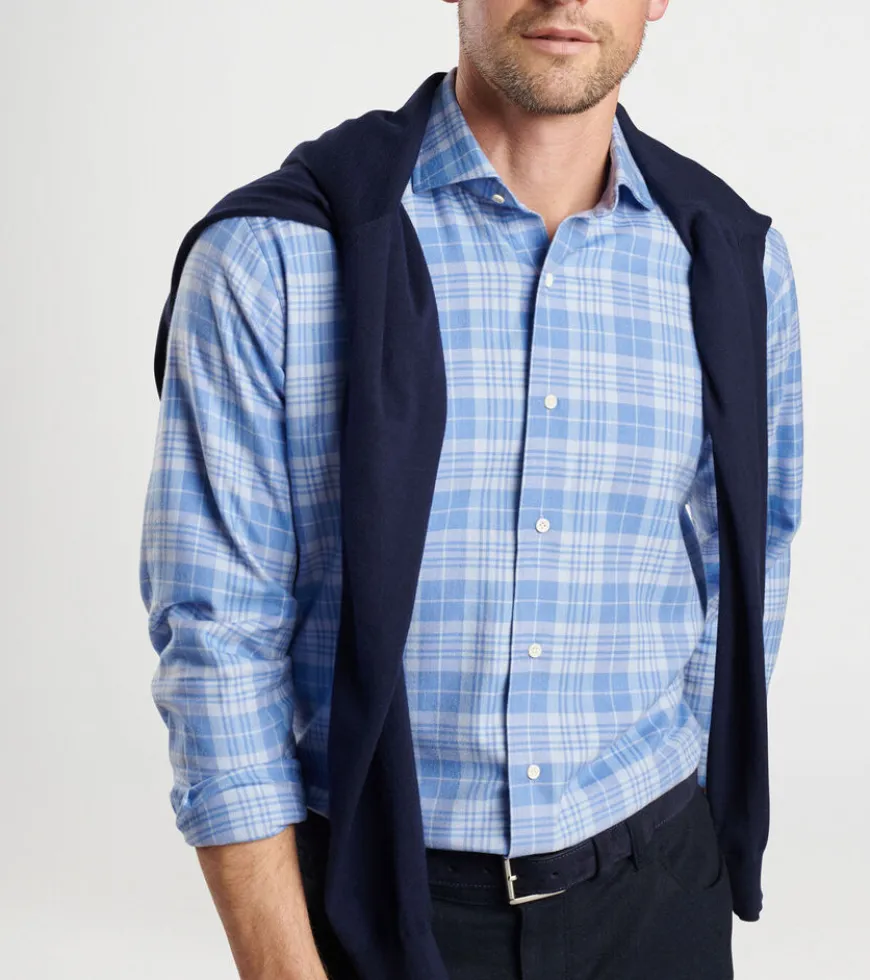 A luxurious take on a classic casual style, this flannel sport shirt calls on an exceptionally soft cotton-rich fabric from Italy with three-season versatility. Exclusive patterns capture a distinct aesthetic, while mother-of-pearl buttons offer a sophisticated finishing touch.