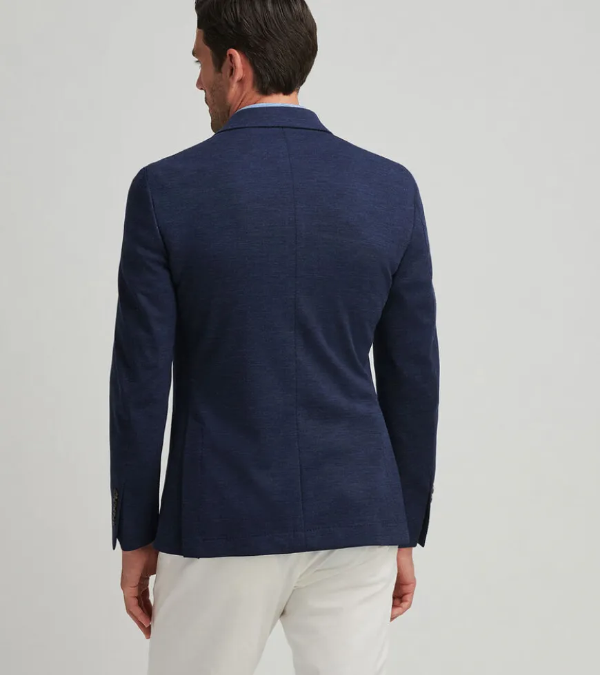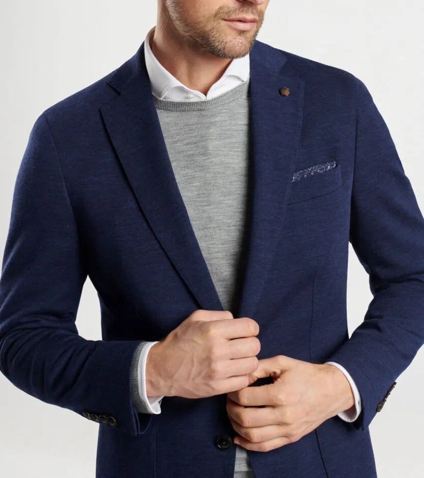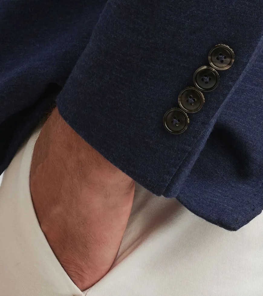 Made from an incredibly soft Italian wool blend, this soft jacket is designed to add a versatile yet subtly unique option to your seasonal wardrobe. A hint of stretch, natural shoulder and half-lined interior allow for easy mobility and comfort. Detailed with a notched lapel, barchetta chest pocket and teardrop buttonholes. Finished with a hand-tacked lapel pin and genuine Italian horn buttons.