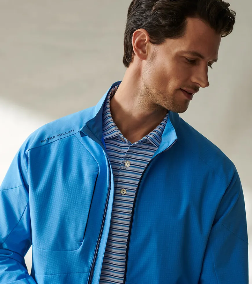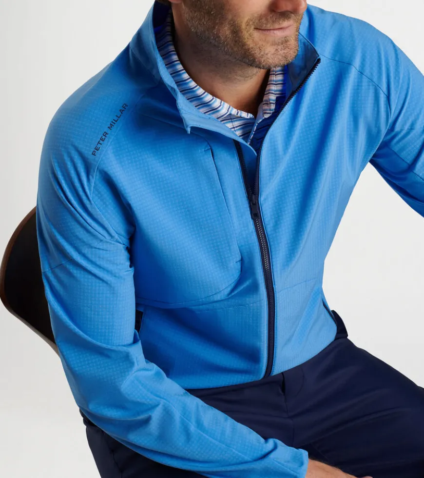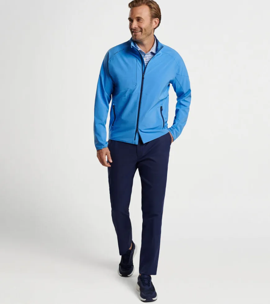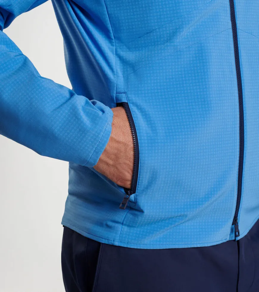 This lightweight windproof jacket is made from a highly water-resistant stretch performance fabric. A gridded fleece interior offers softness and easy layering on extra chilly days.