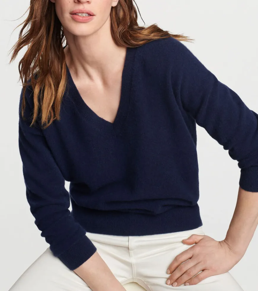 Timeless style meets unrivaled softness in this luxurious v-neck sweater, crafted in London from the finest Italian yarns. A new vertical rib on the cuff and hem accents this classic design. Shaped by a comfortable, slightly oversized fit.