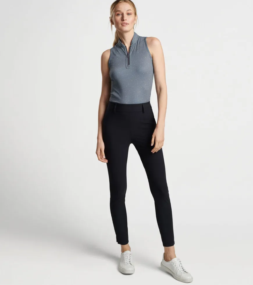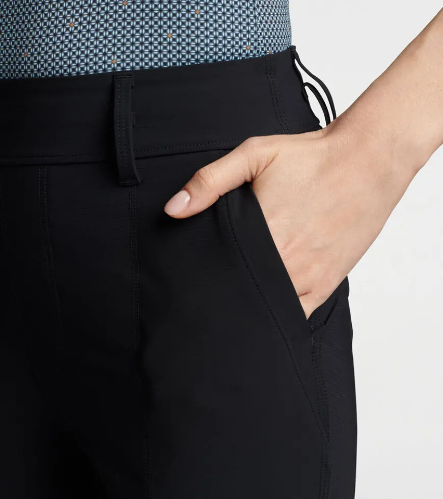 Shaped by a subtle fabric sourced from the same Italian mill as our men’s Bingham family, this all-new ankle pant is highly technical and exceptionally lightweight. An ideal combination of softness, stretch and versatility in a sleek pencil pant style that’s perfect for golf, travel and everyday wear. Finished with a stretch interlining at the waistband, double belt loops to accommodate multiple sizes and concealed zippers at the ankle.