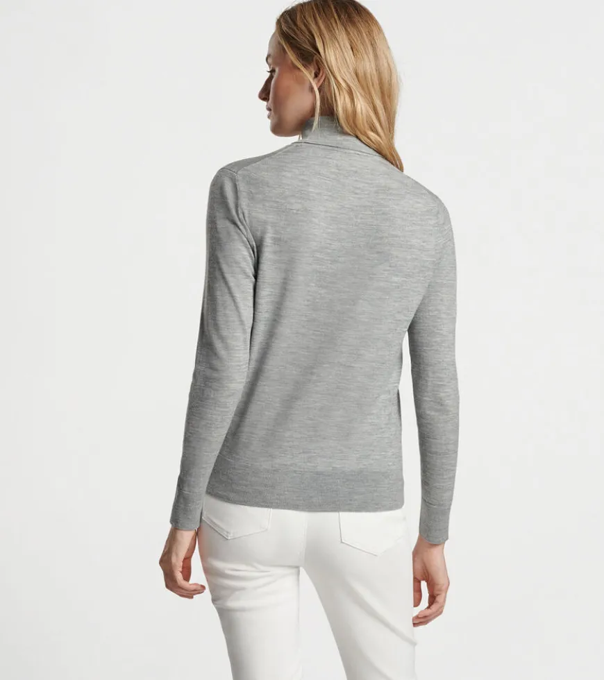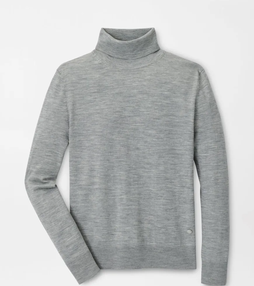 An icon of elegant ease, this new turtleneck showcases lightweight softness, travel-ready adaptability and stretch comfort. This signature design features fine Merino wool spun around a core performance yarn, offering a luxurious look and hand feel with added resiliency.