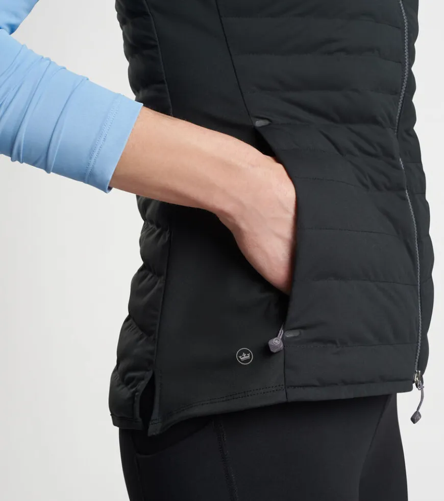 This lightweight layer is designed with an innovative performance insulation made from recycled fibers for incredible warmth and breathability. The wind-and-water-resistant exterior features front zip pockets perfect for storing tees and other essentials. Ergonomic channel insulation, stretch panels and lightweight zippers make it an ideal choice for the course and beyond.