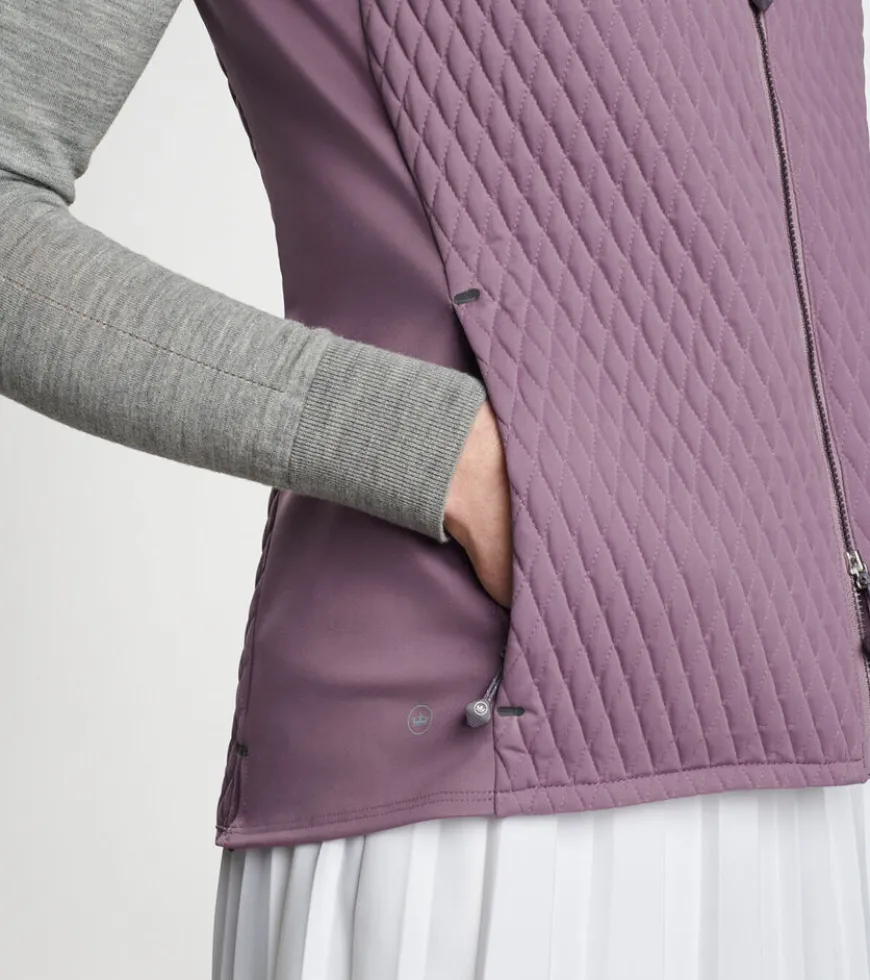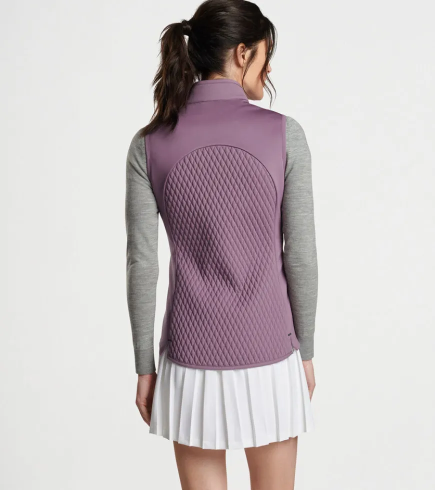 Designed with an all-new look featuring a miniature diamond quilted pattern, this new twist on a trusted classic handles on and off course layering with ease. A lightly insulated front and back offer optimal warmth, while stretch shoulders and sides enhance a highly mobile, singularly stylish design.