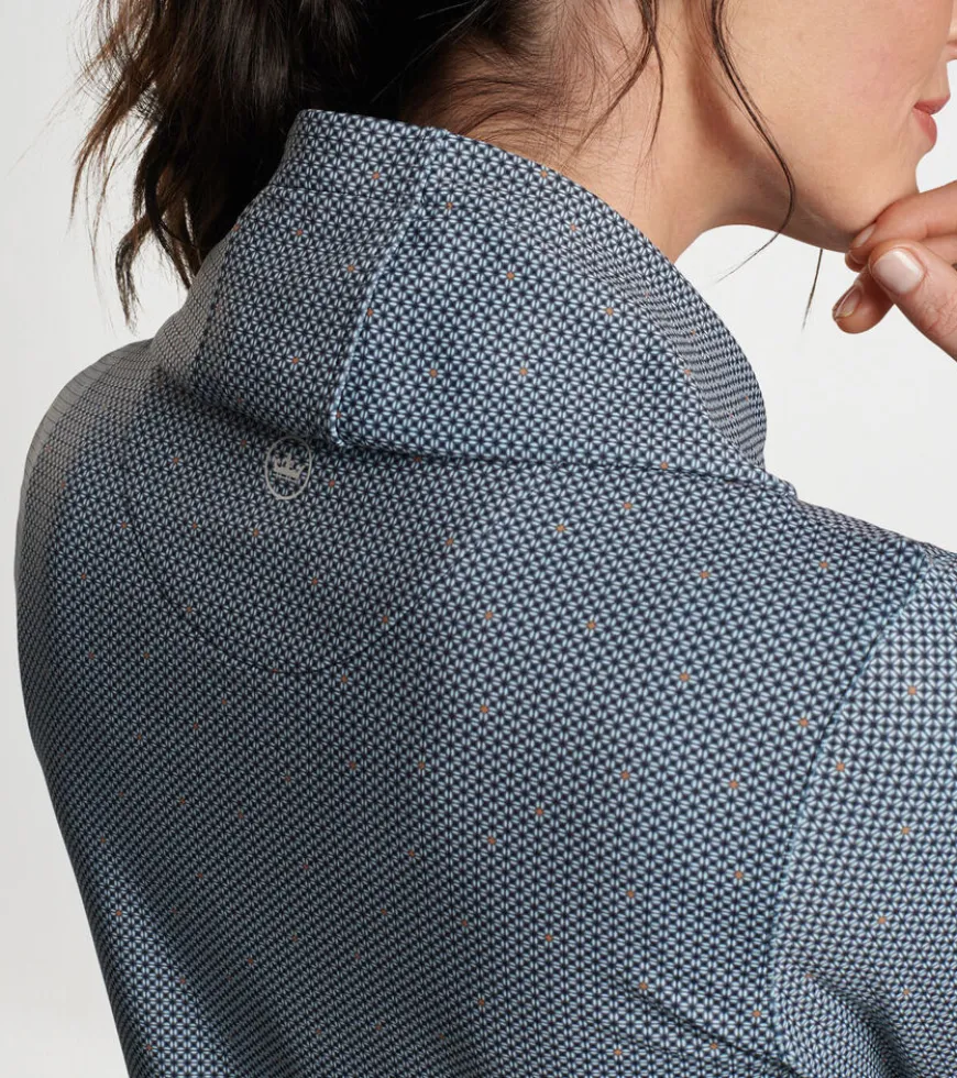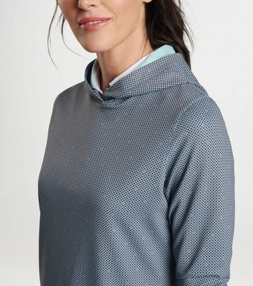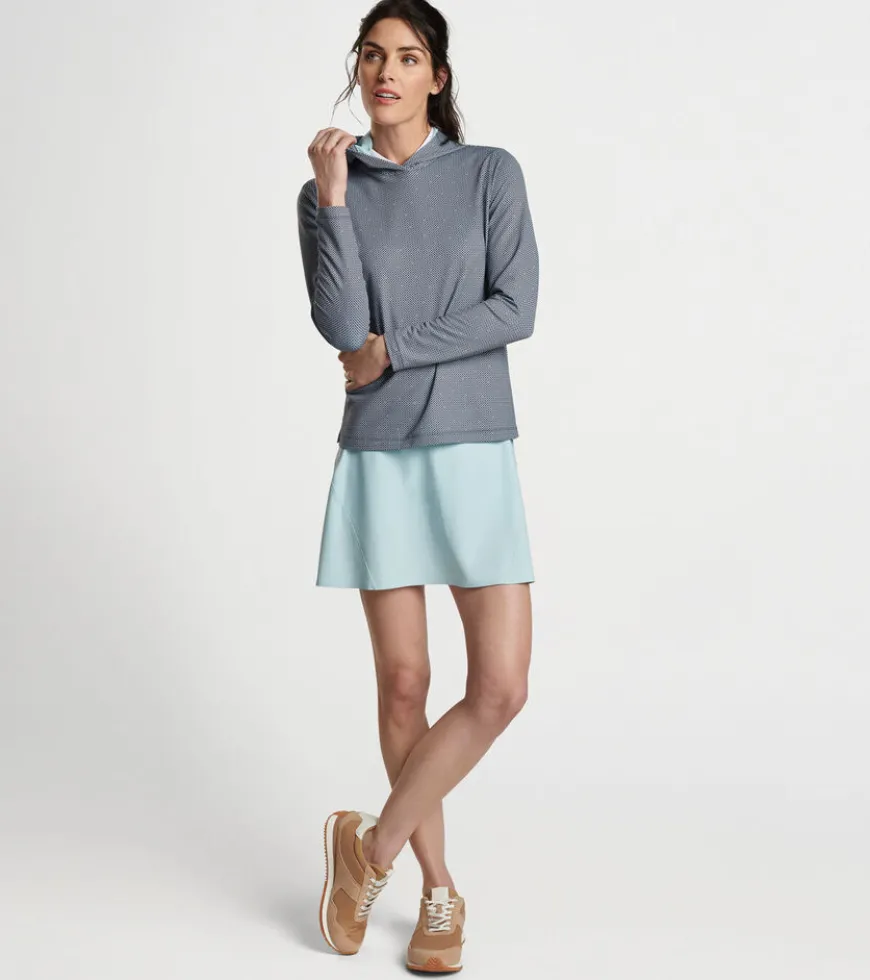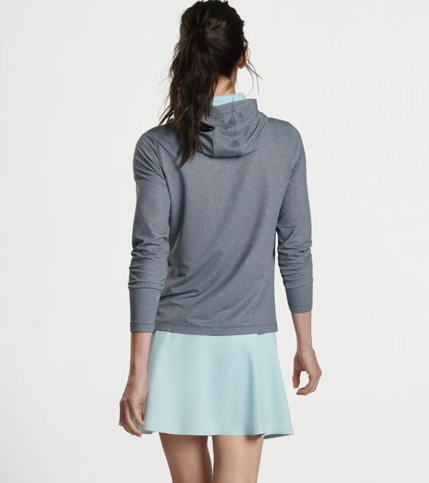 A casual silhouette with a streamlined design, this hoodie is shaped by a wicking stretch fabric with a smooth jersey exterior and lightly brushed terry back. Finished with a crossover hood and notched hem.